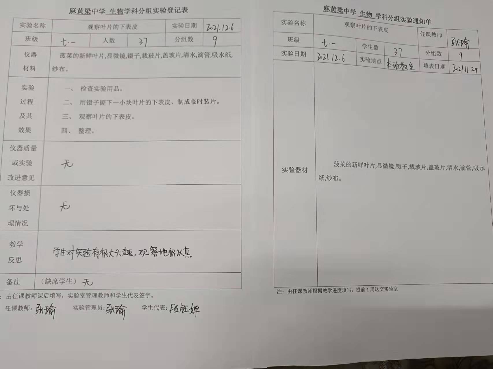 实验登记表