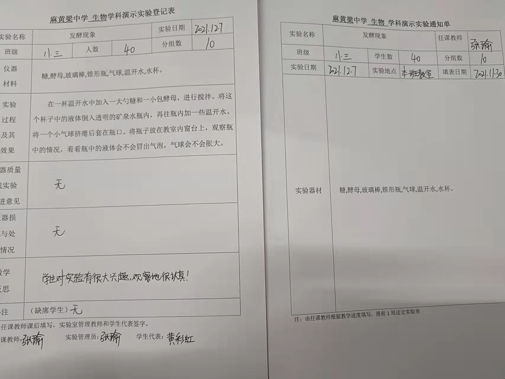 实验登记表