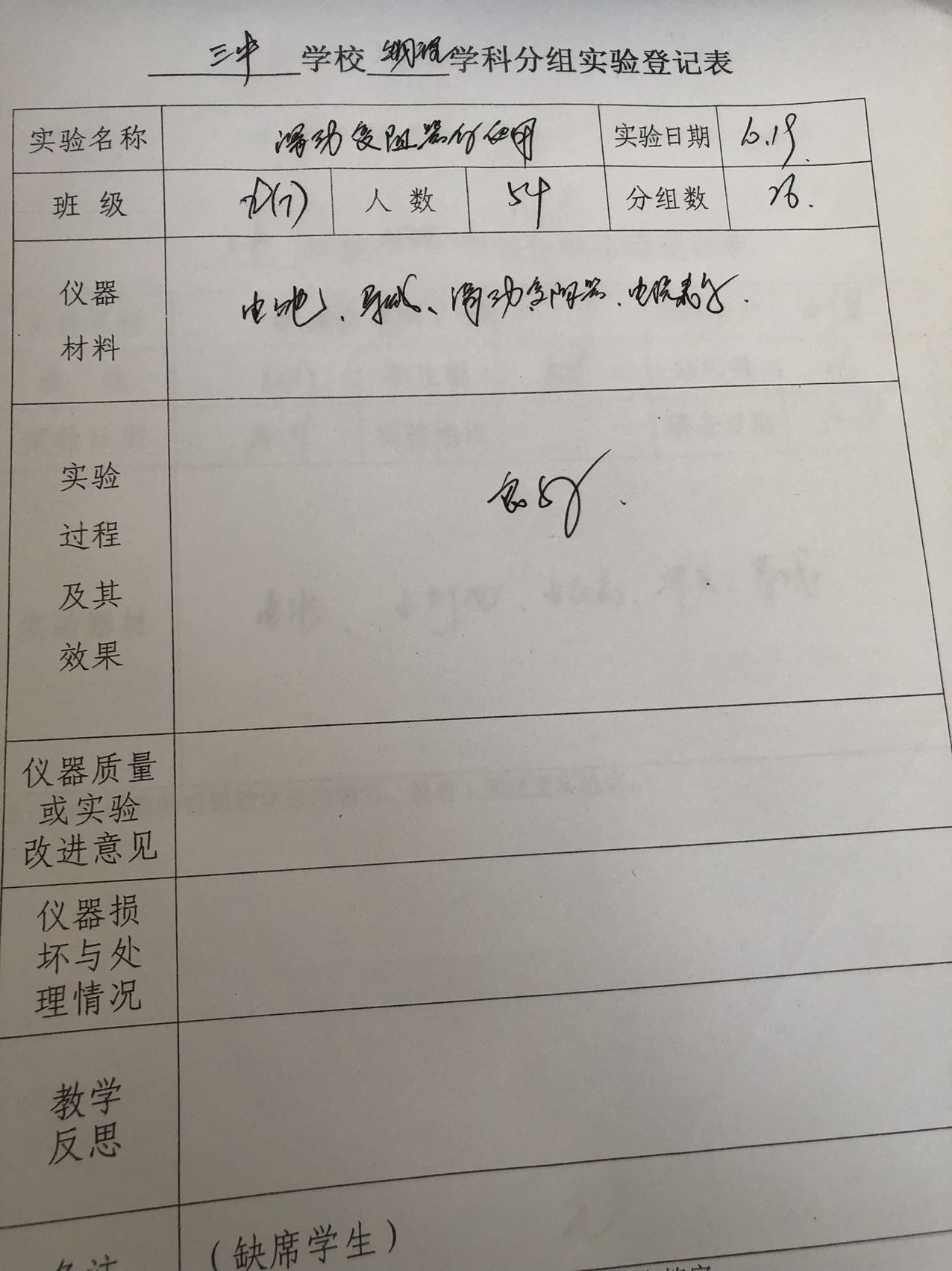 实验登记表