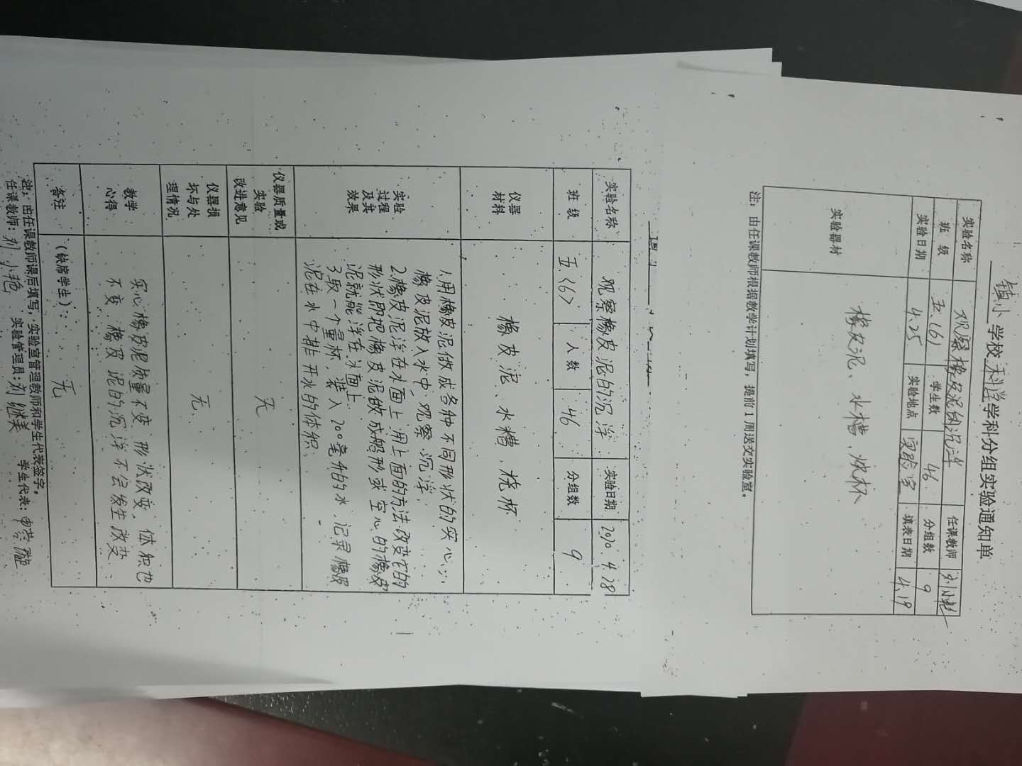 实验登记表