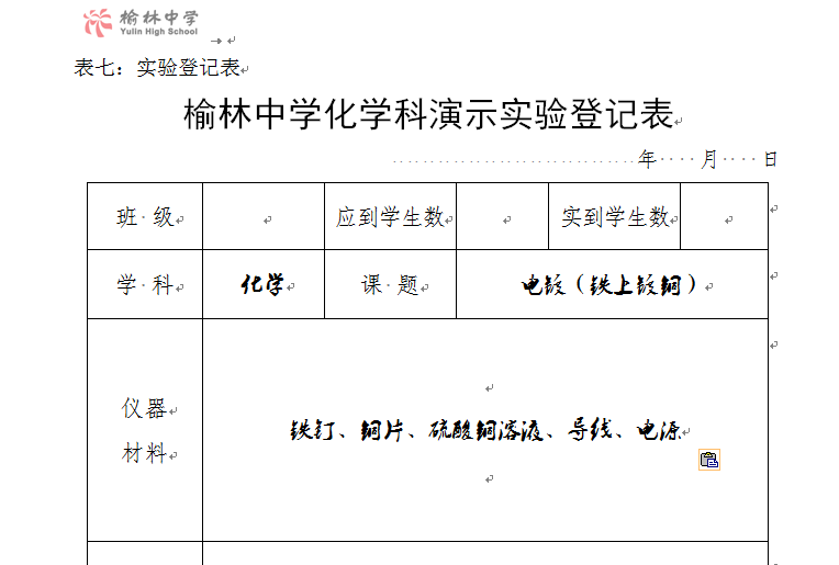 实验登记表