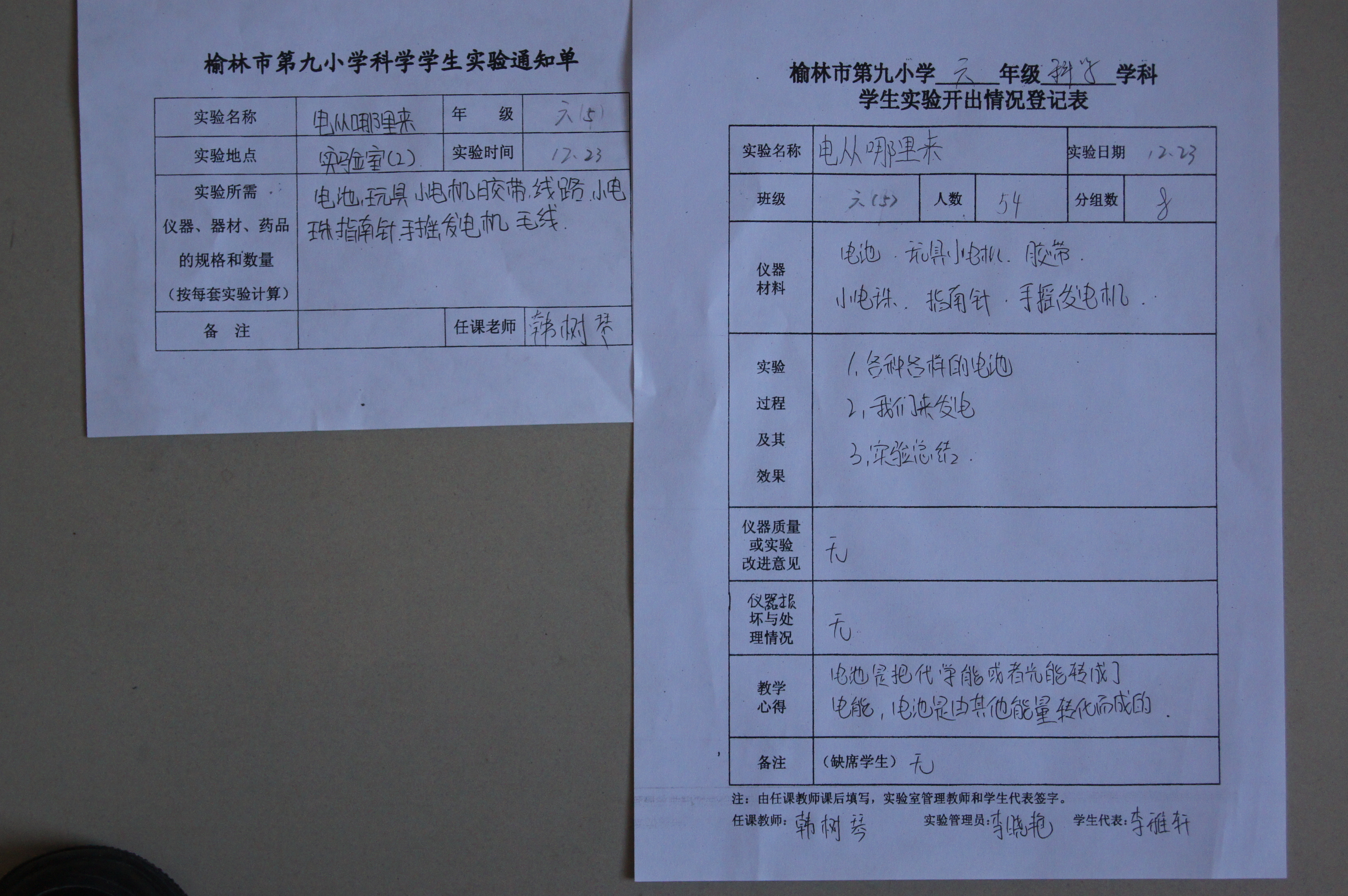 实验登记表
