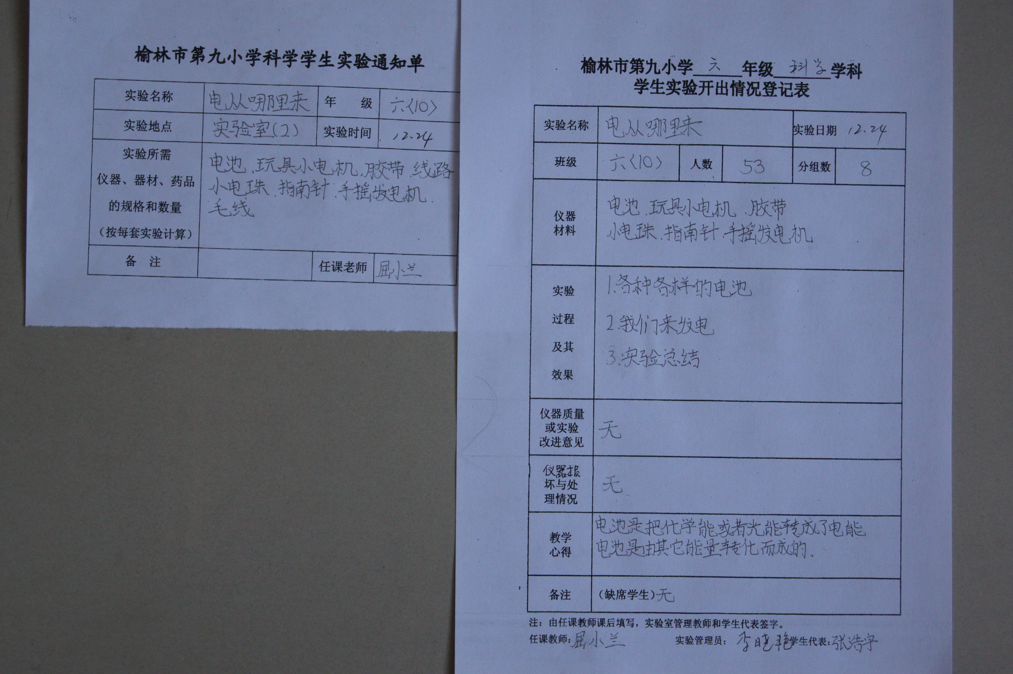 实验登记表