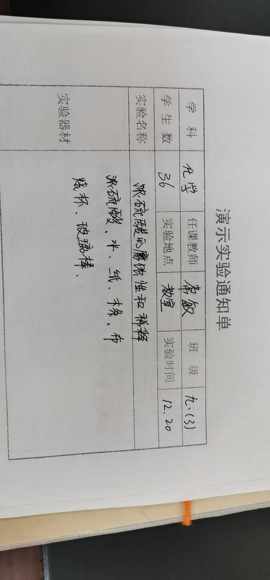 实验登记表