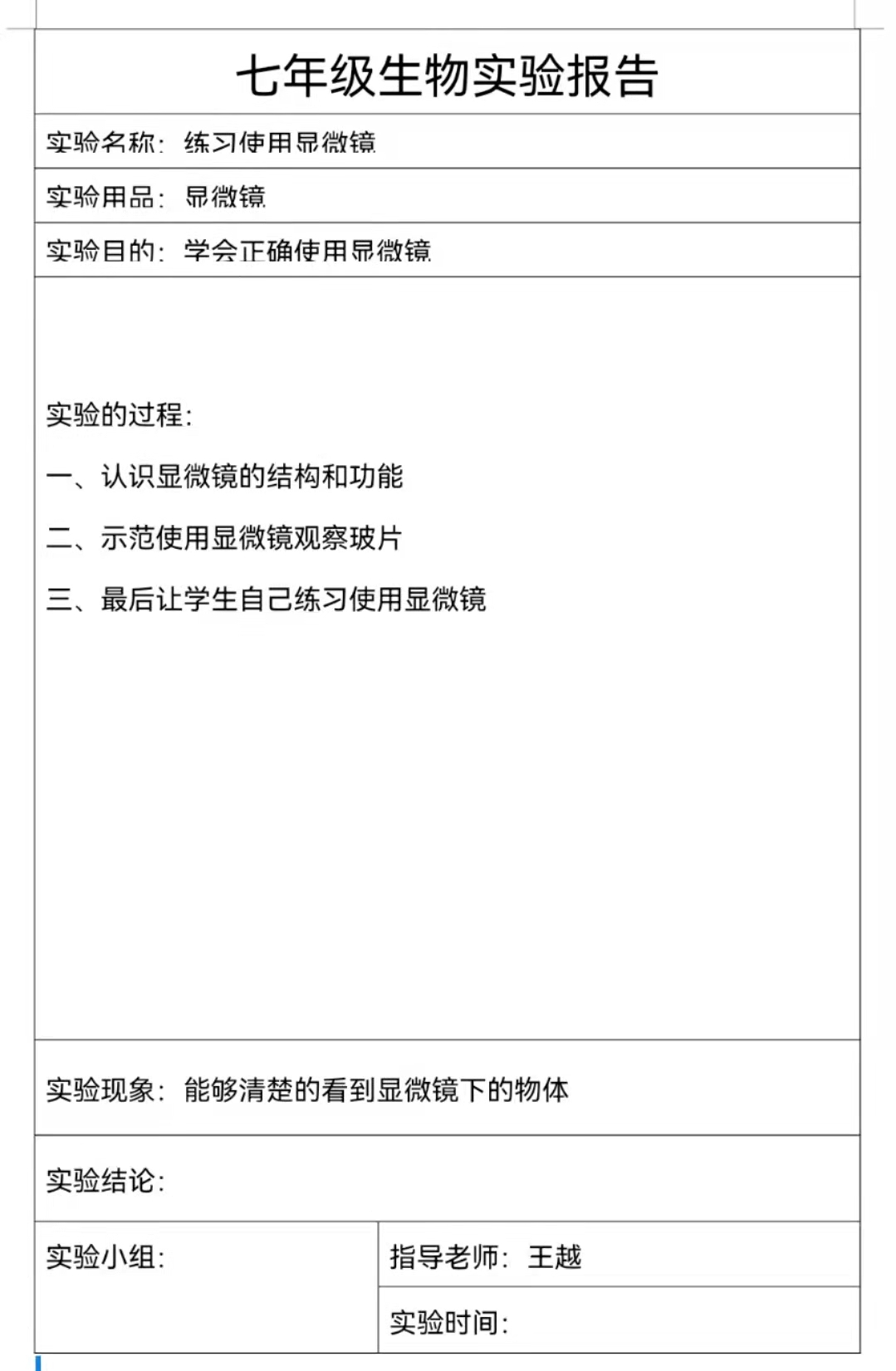 练习使用显微镜
