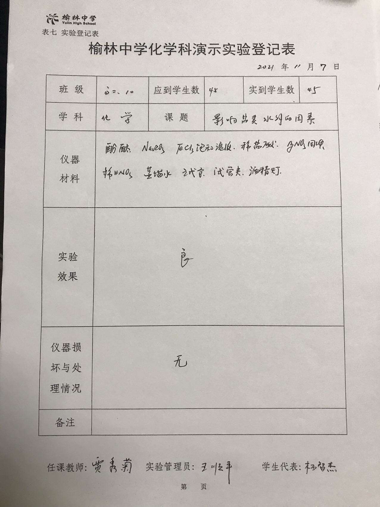 实验登记表
