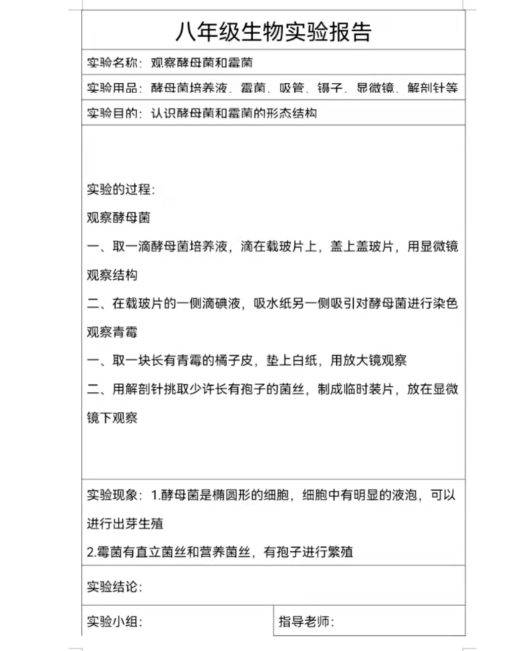 观察酵母菌和霉菌