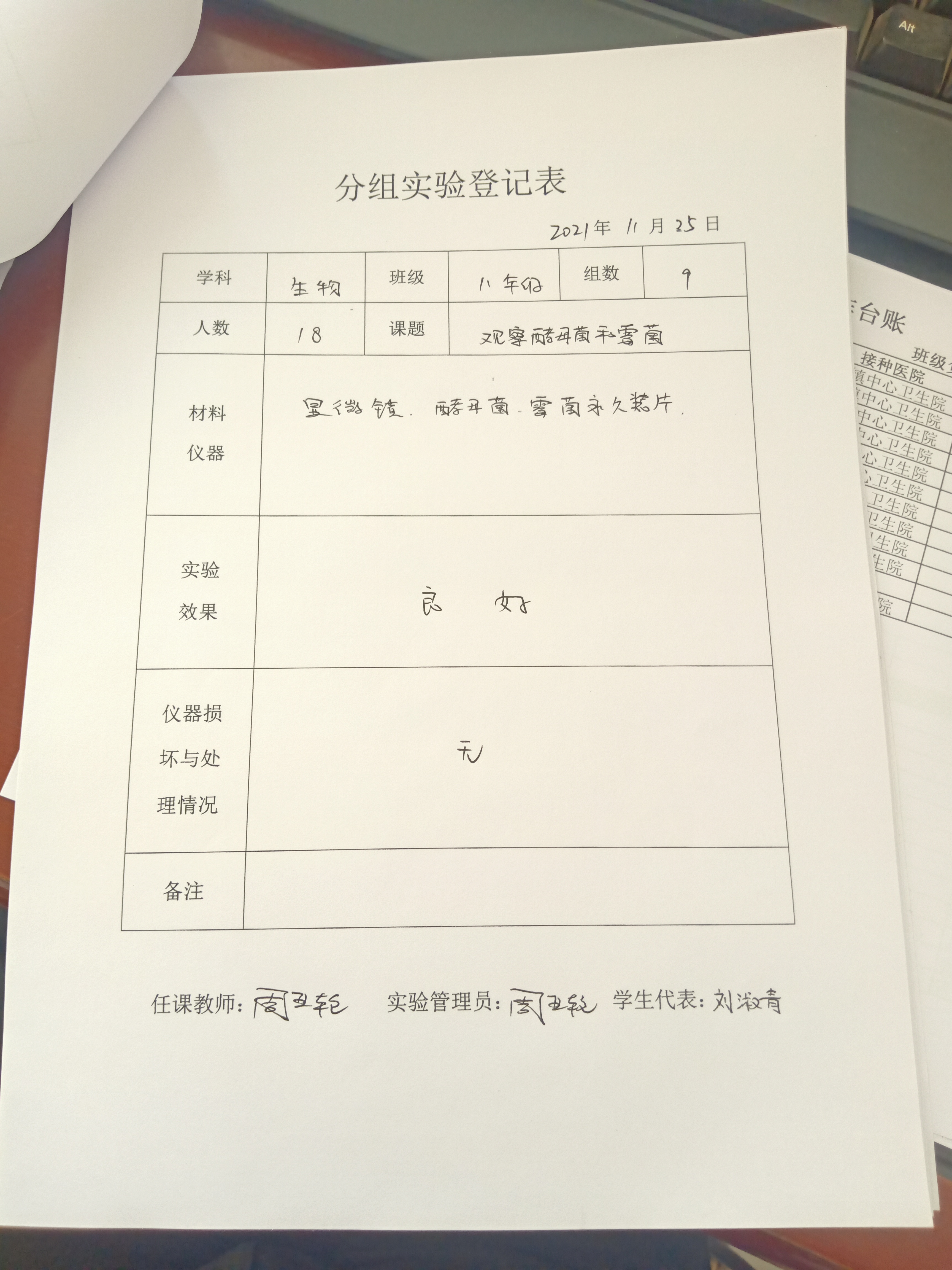 实验登记表