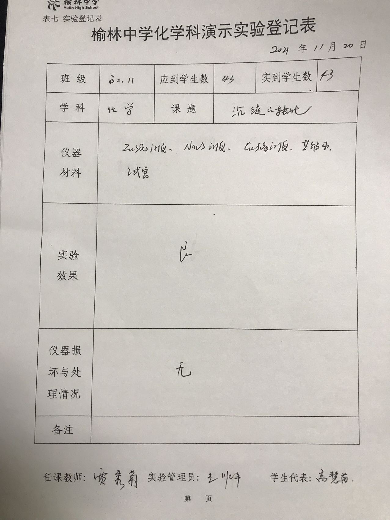 实验登记表