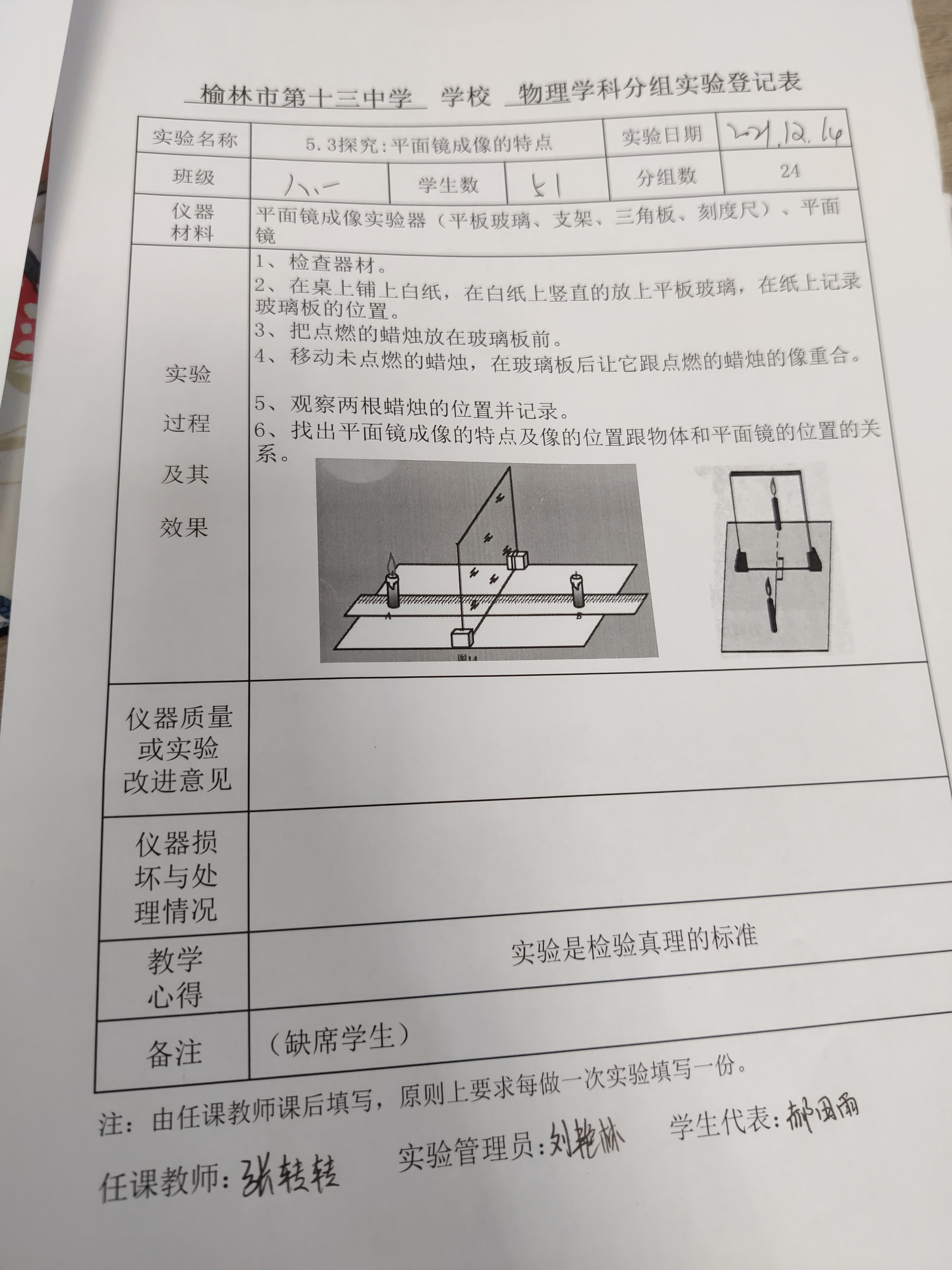 探究:平面镜成像的特点