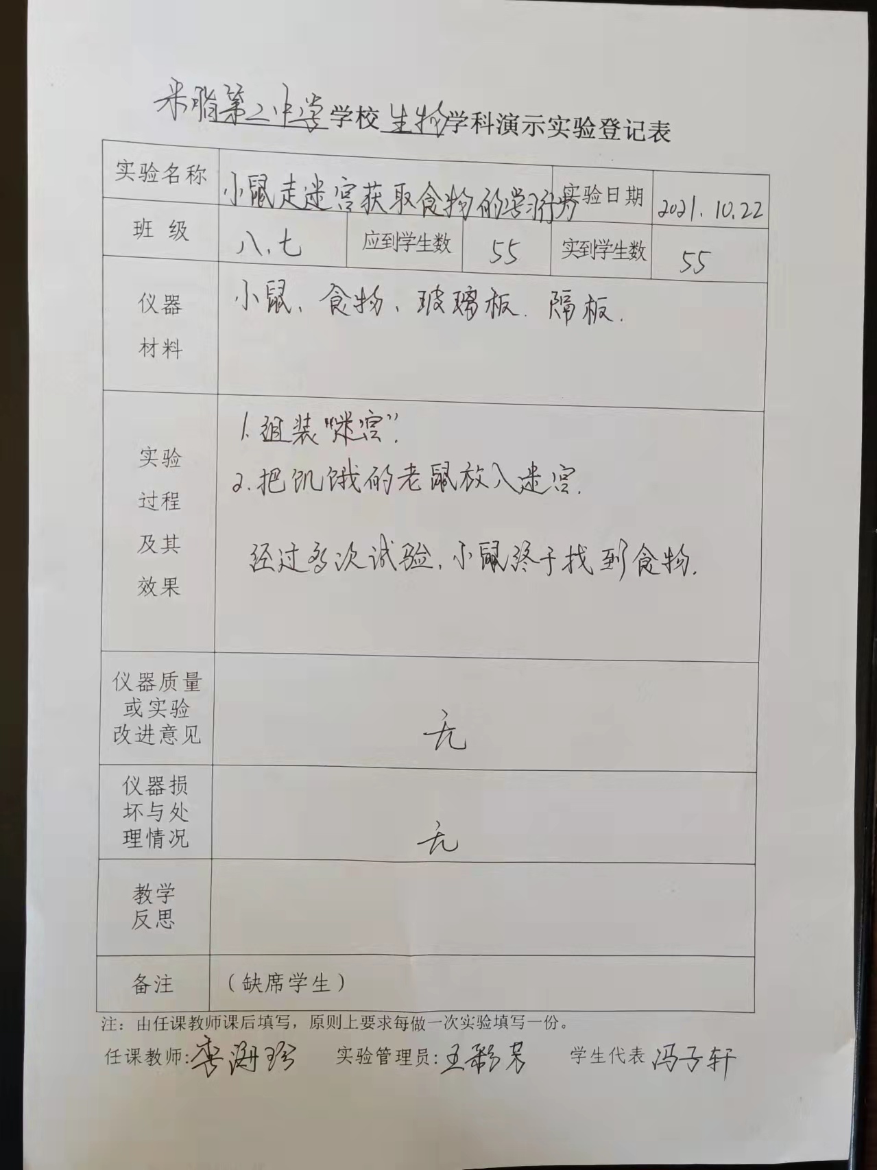 实验登记表