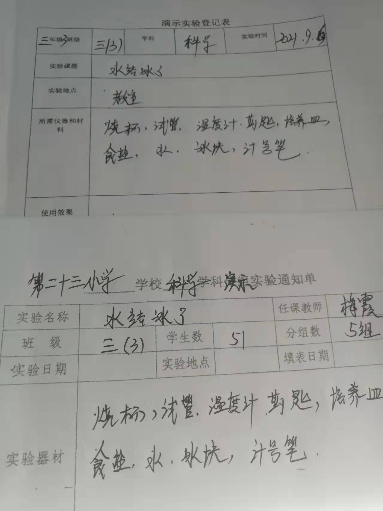 【三年级三班】水结冰了