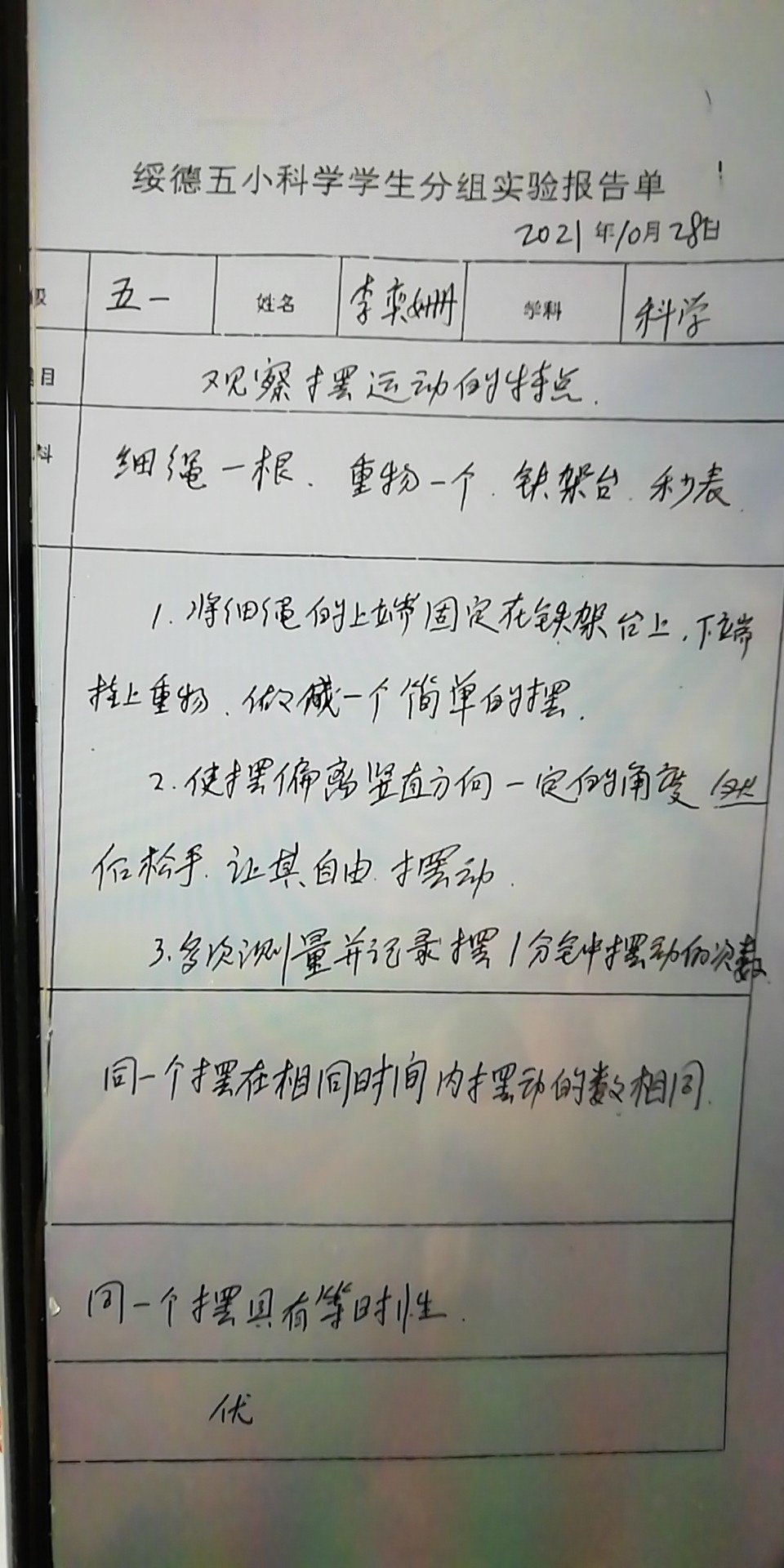 摆的快慢与摆绳长度的关系
