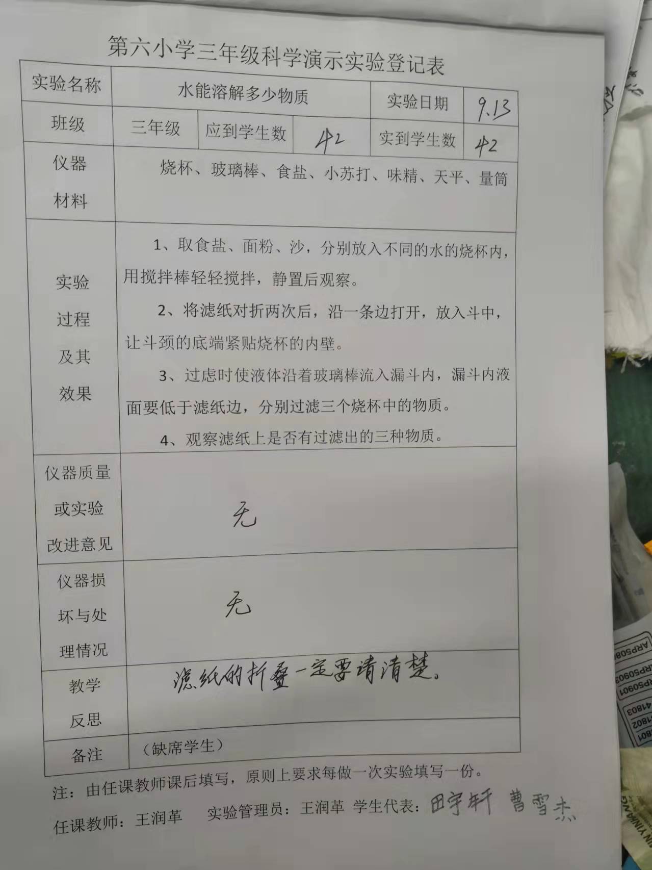 实验登记表