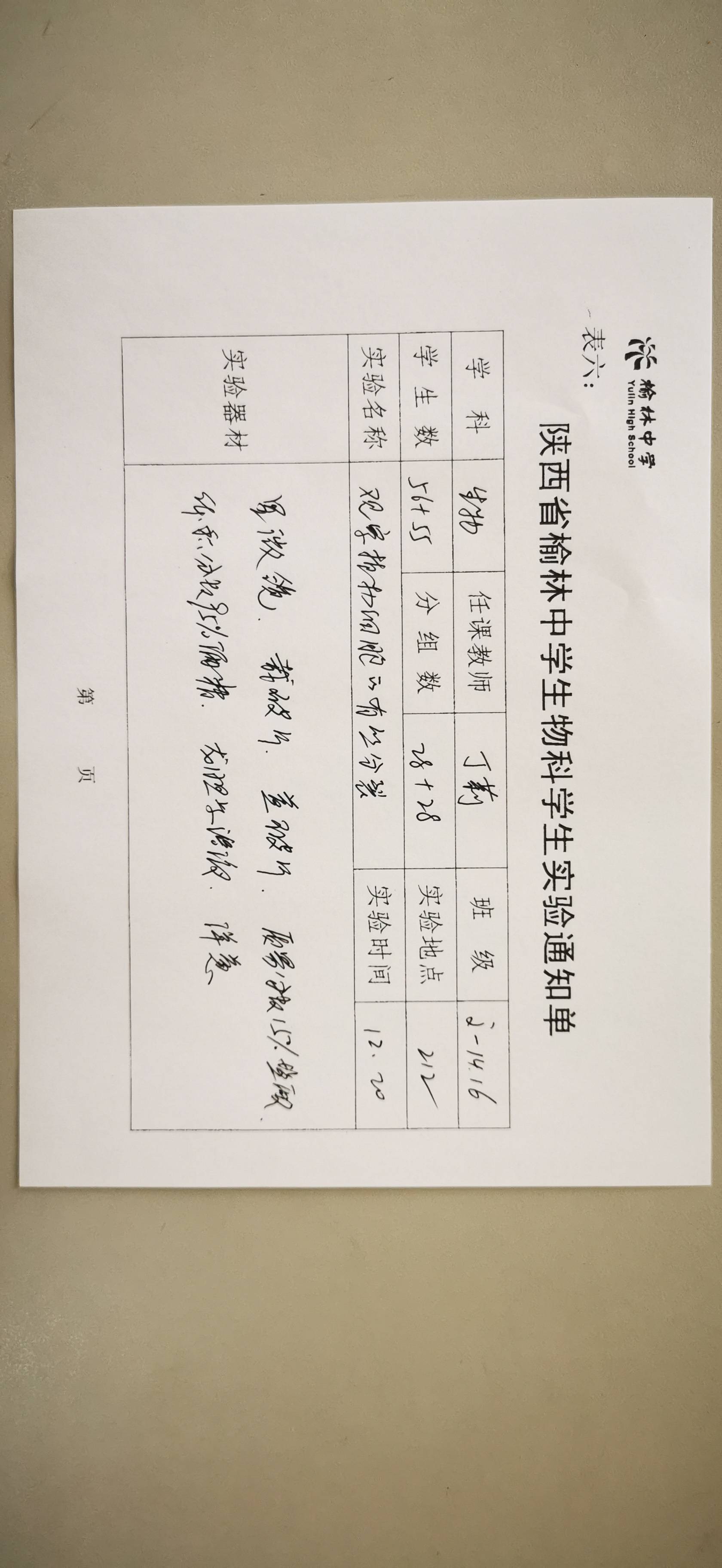 实验登记表