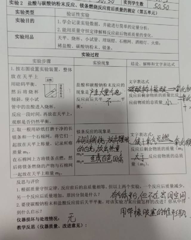 盐酸和碳酸钠粉末反应前后质量变化