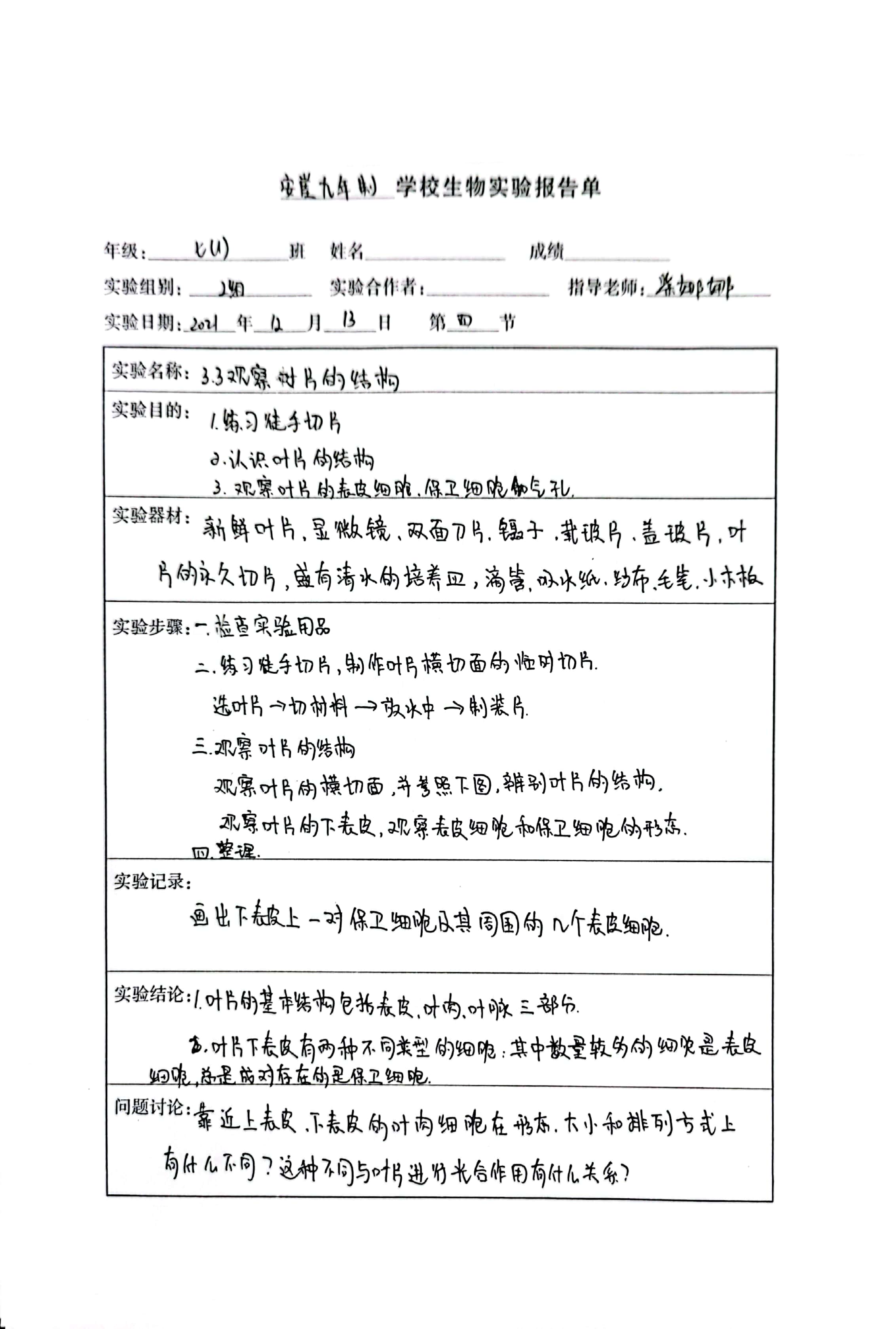3.3观察叶片的结构