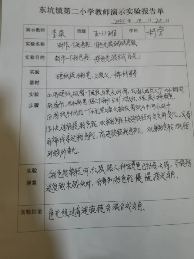 制作一个彩色轮,将色光混合实验