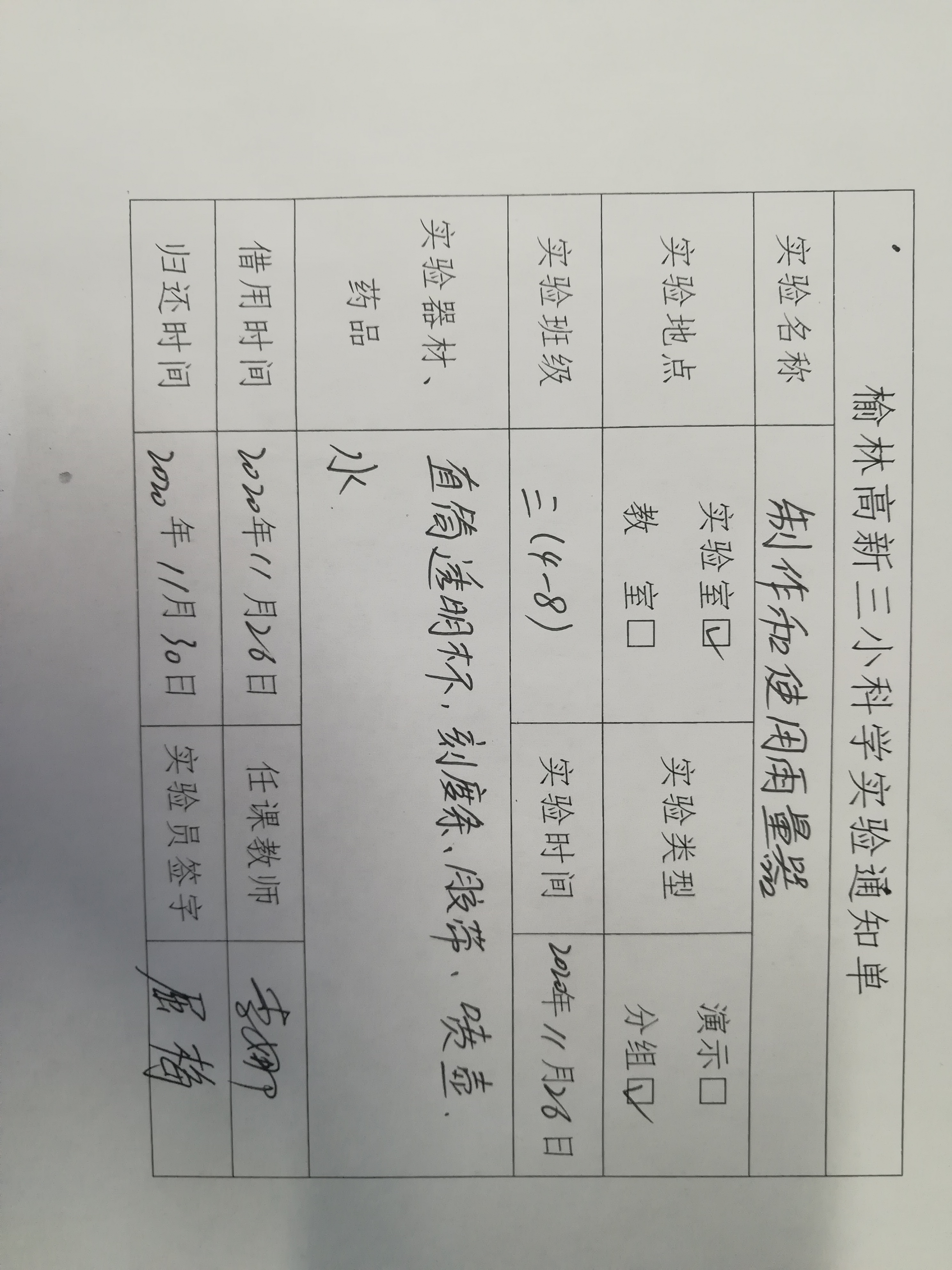 实验登记表