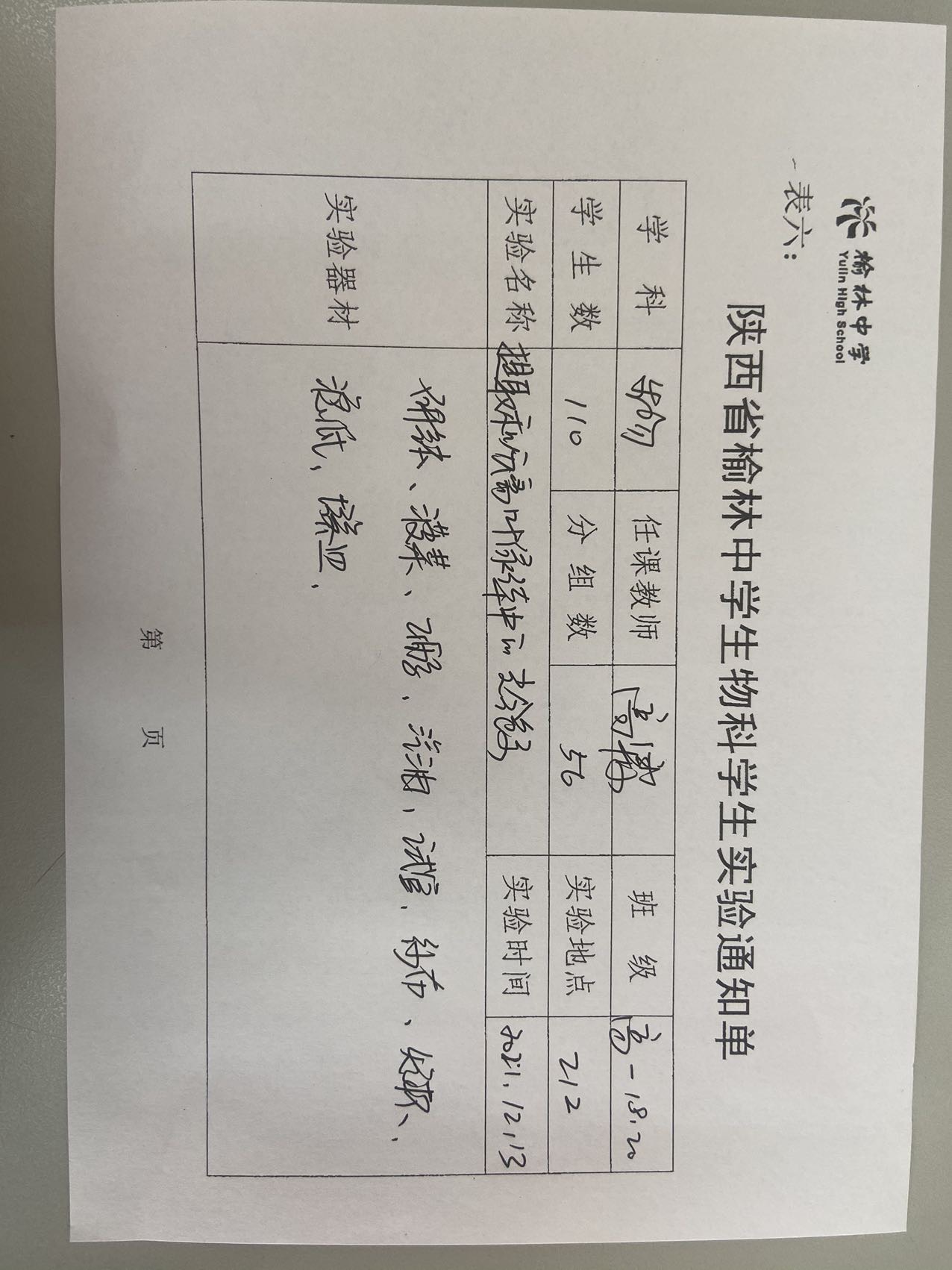 实验登记表