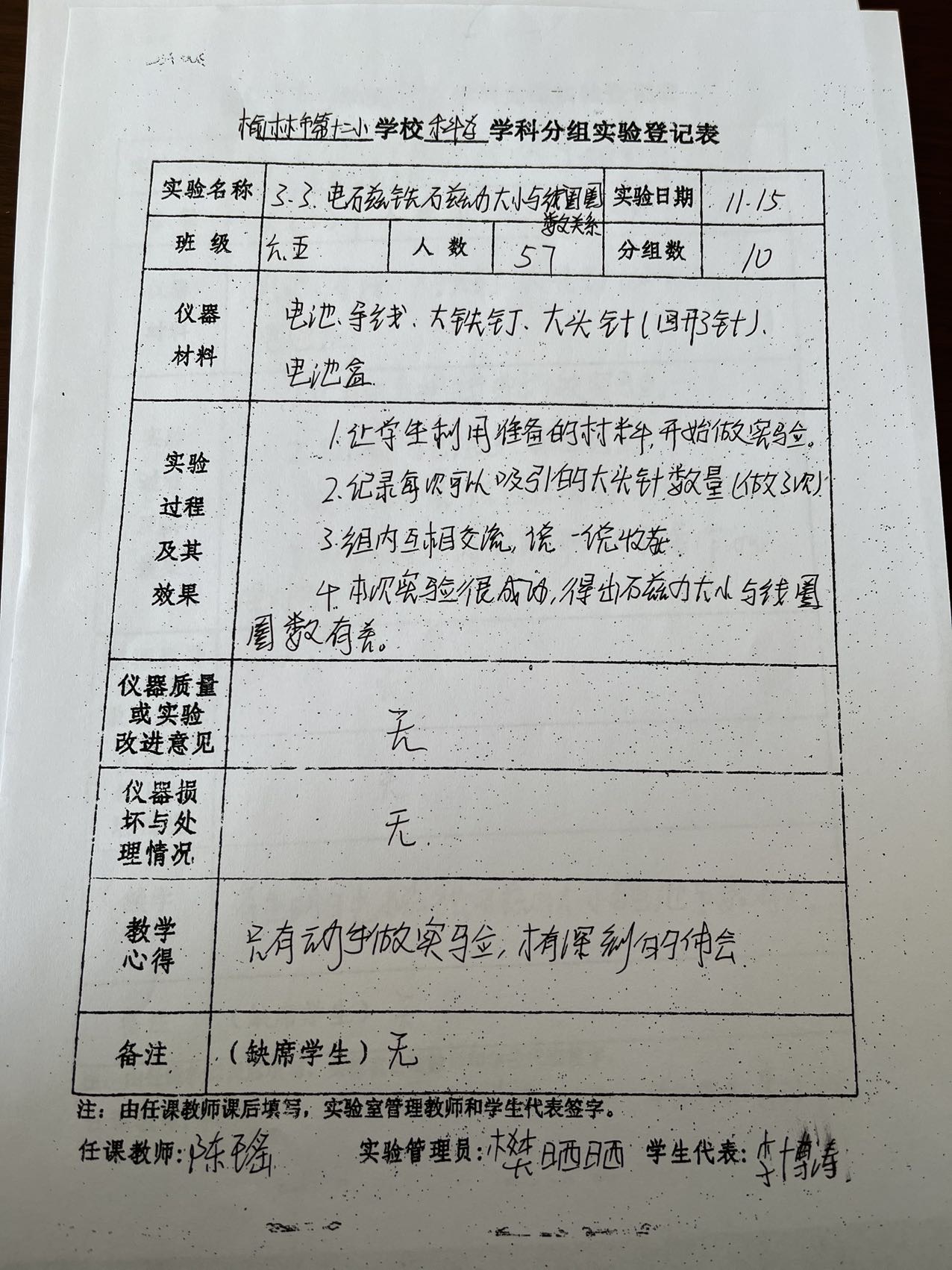 实验登记表