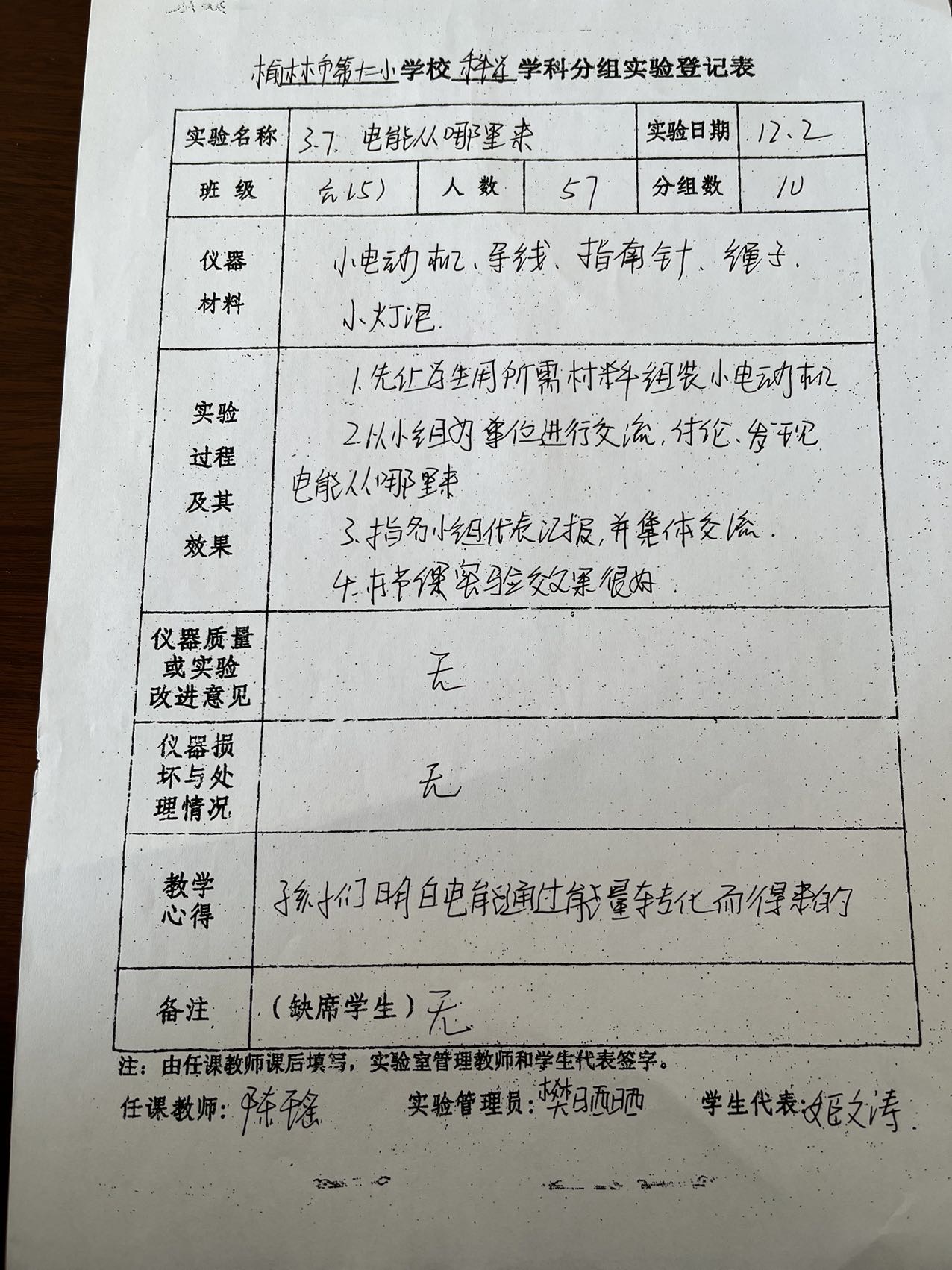 实验登记表