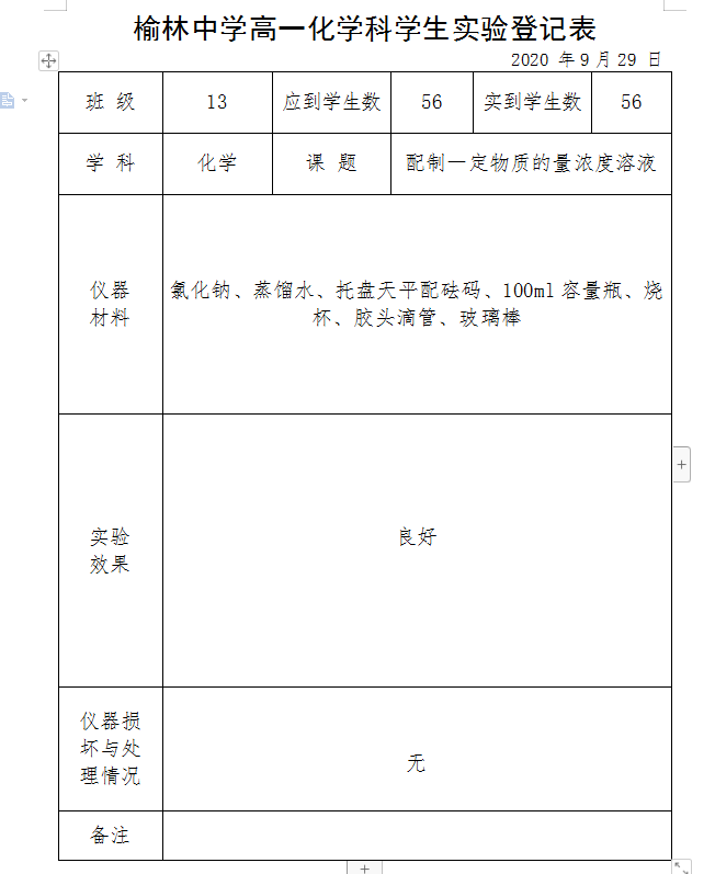 实验登记表