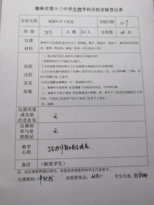 实验登记表