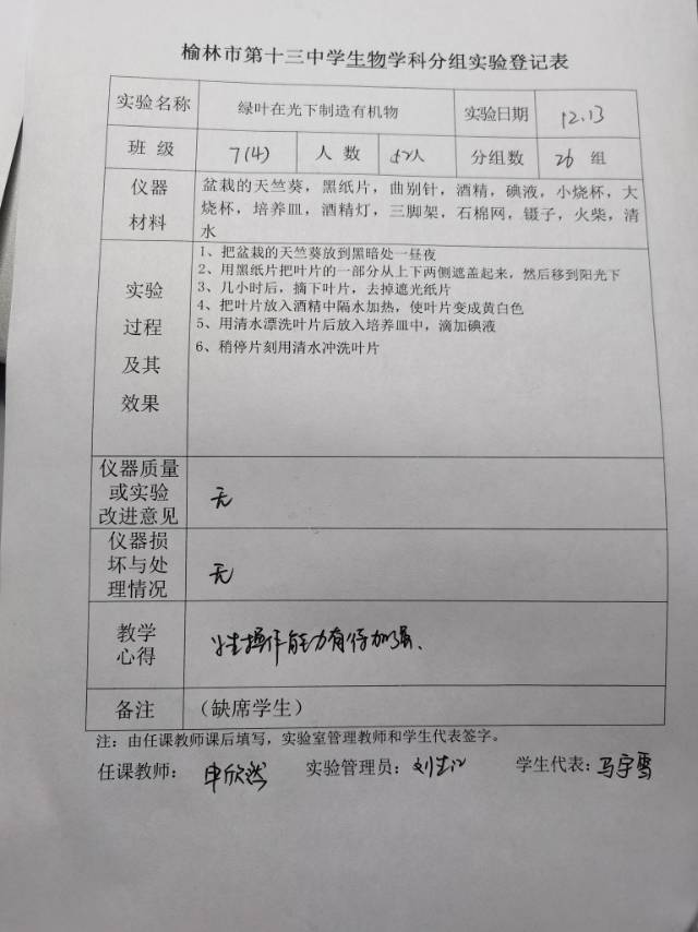 实验登记表