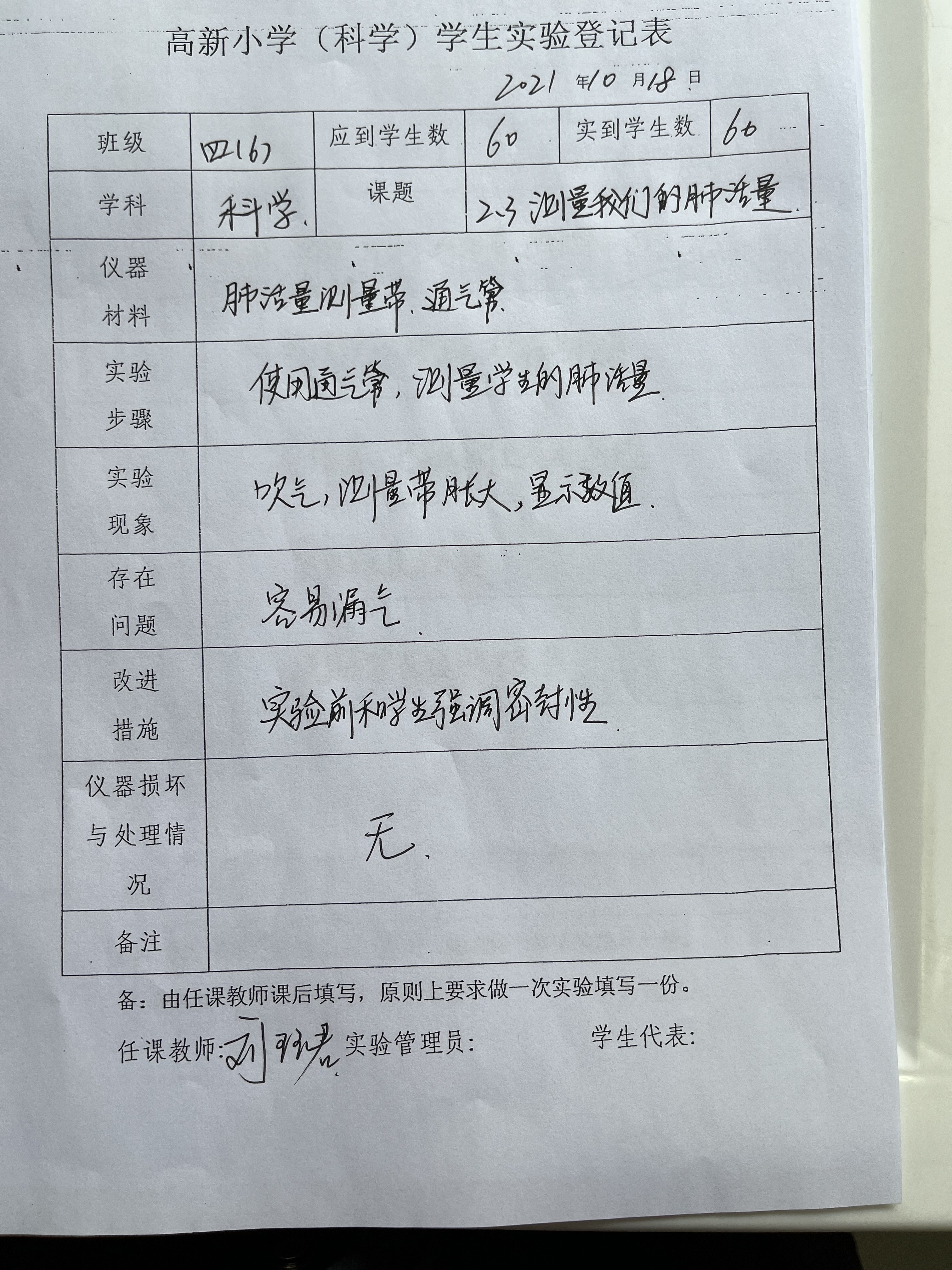 实验登记表