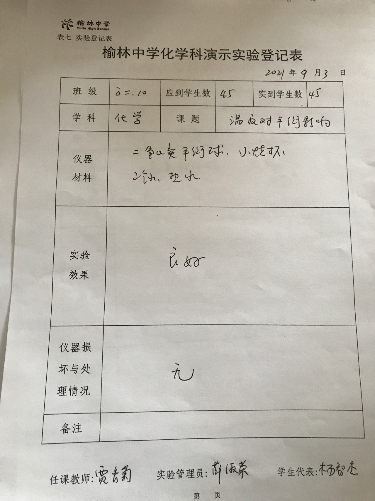 实验登记表
