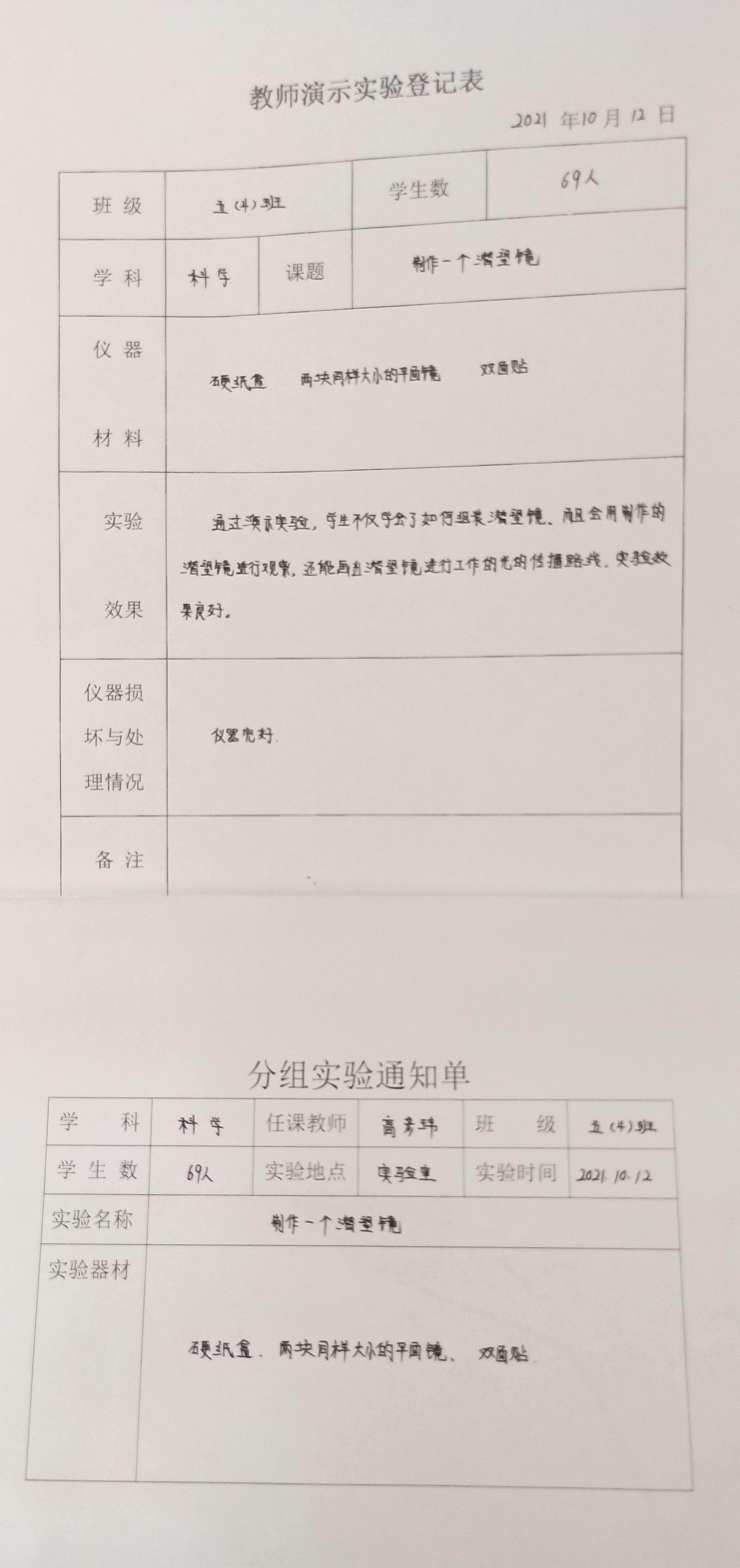 实验登记表