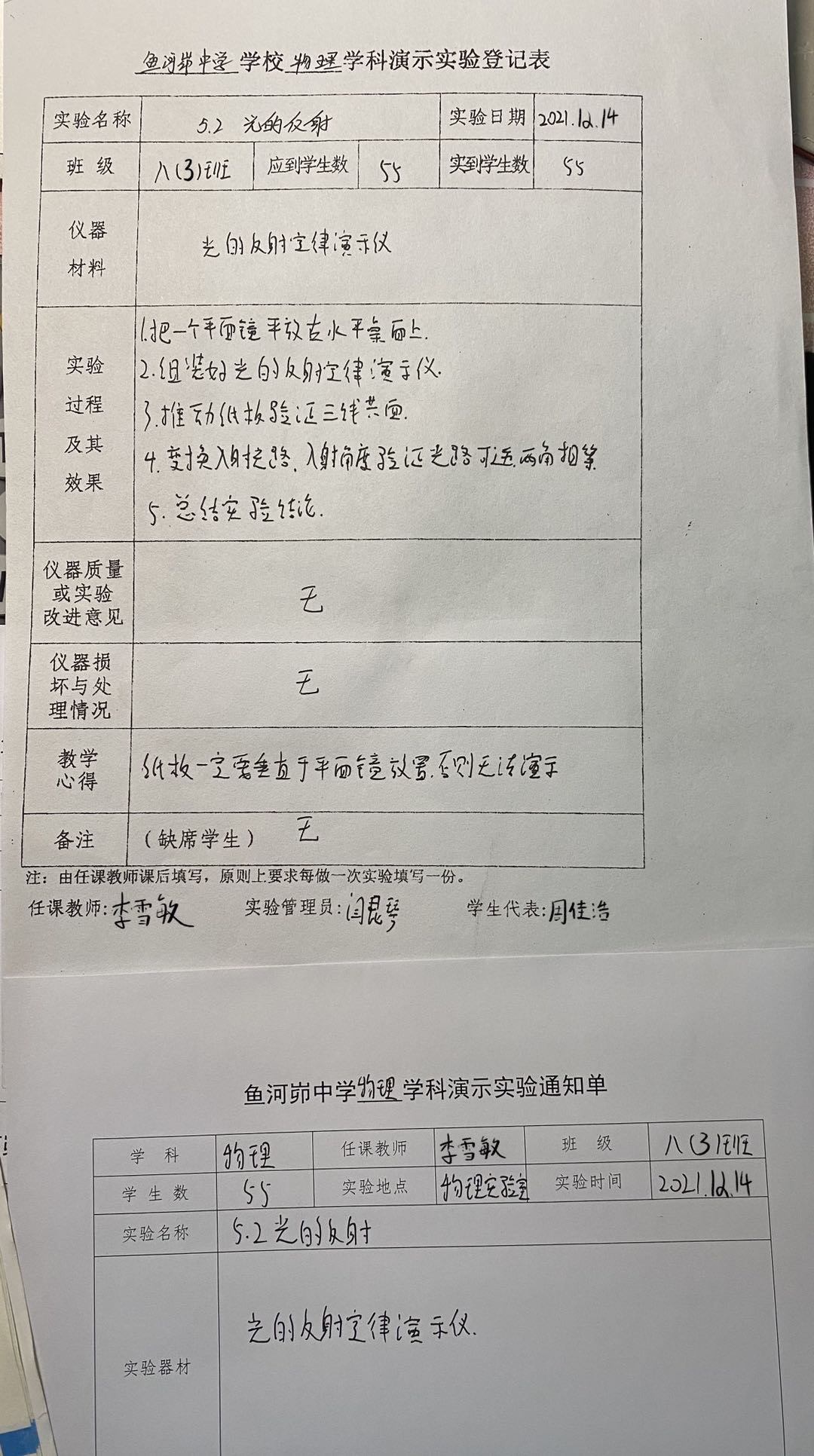 实验登记表