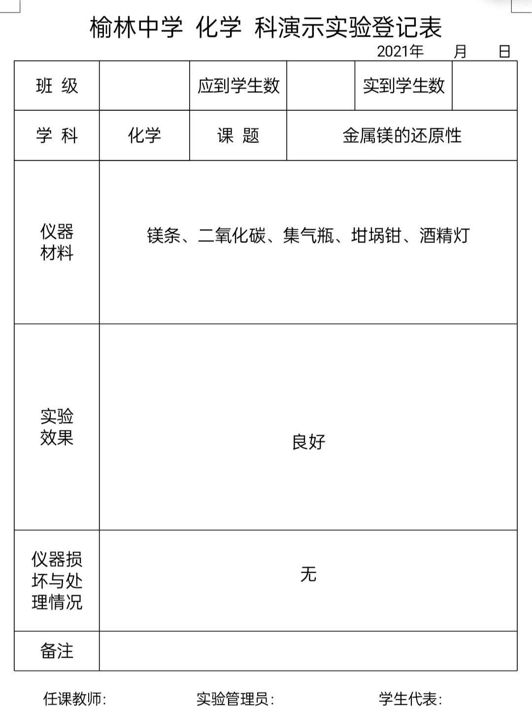 实验登记表