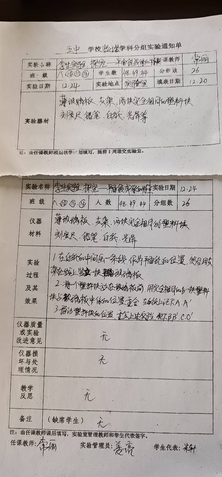 实验登记表