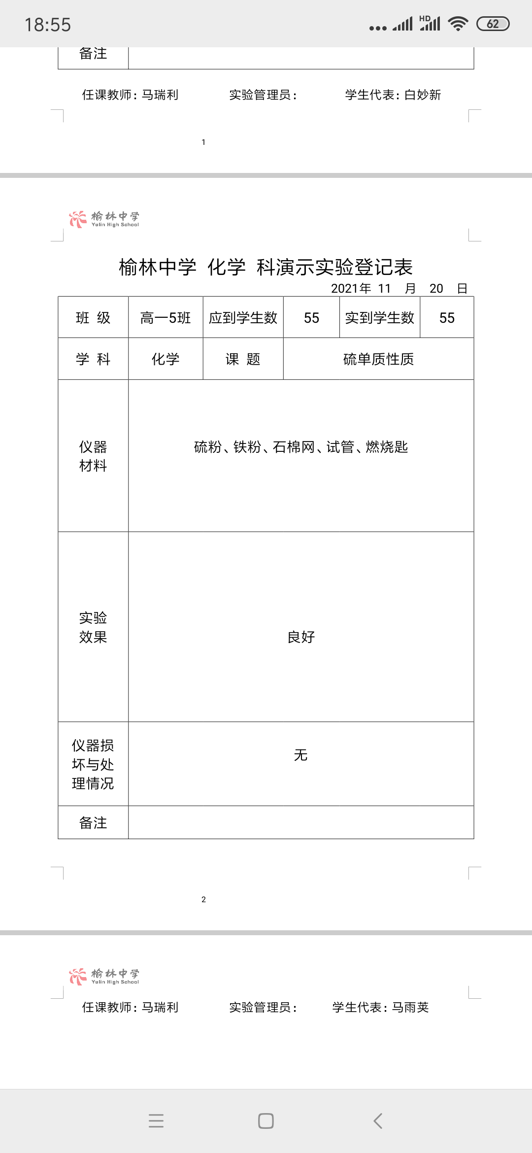 实验登记表
