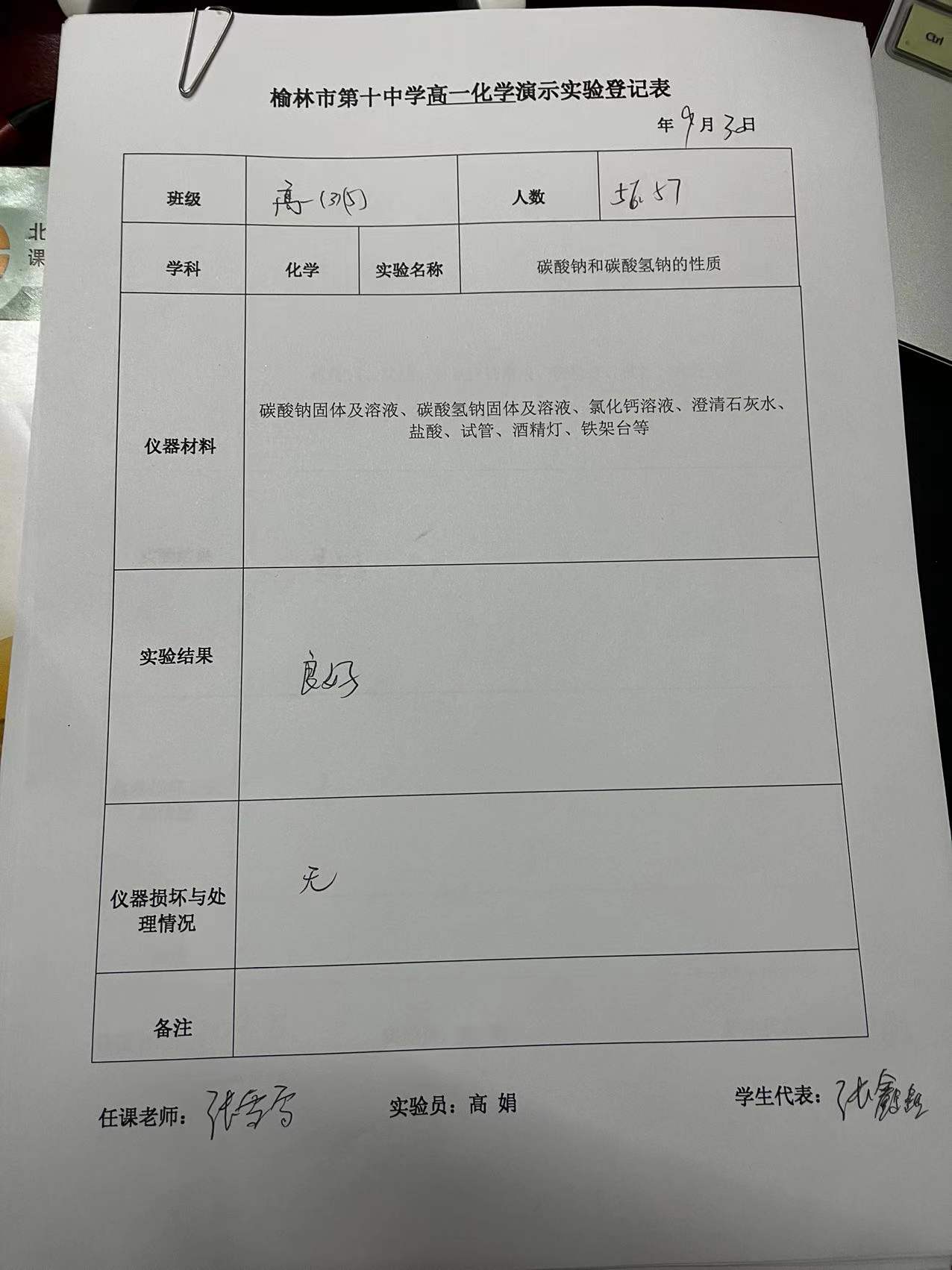 实验登记表