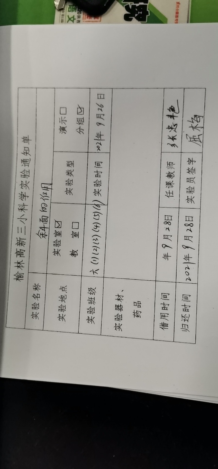 实验登记表