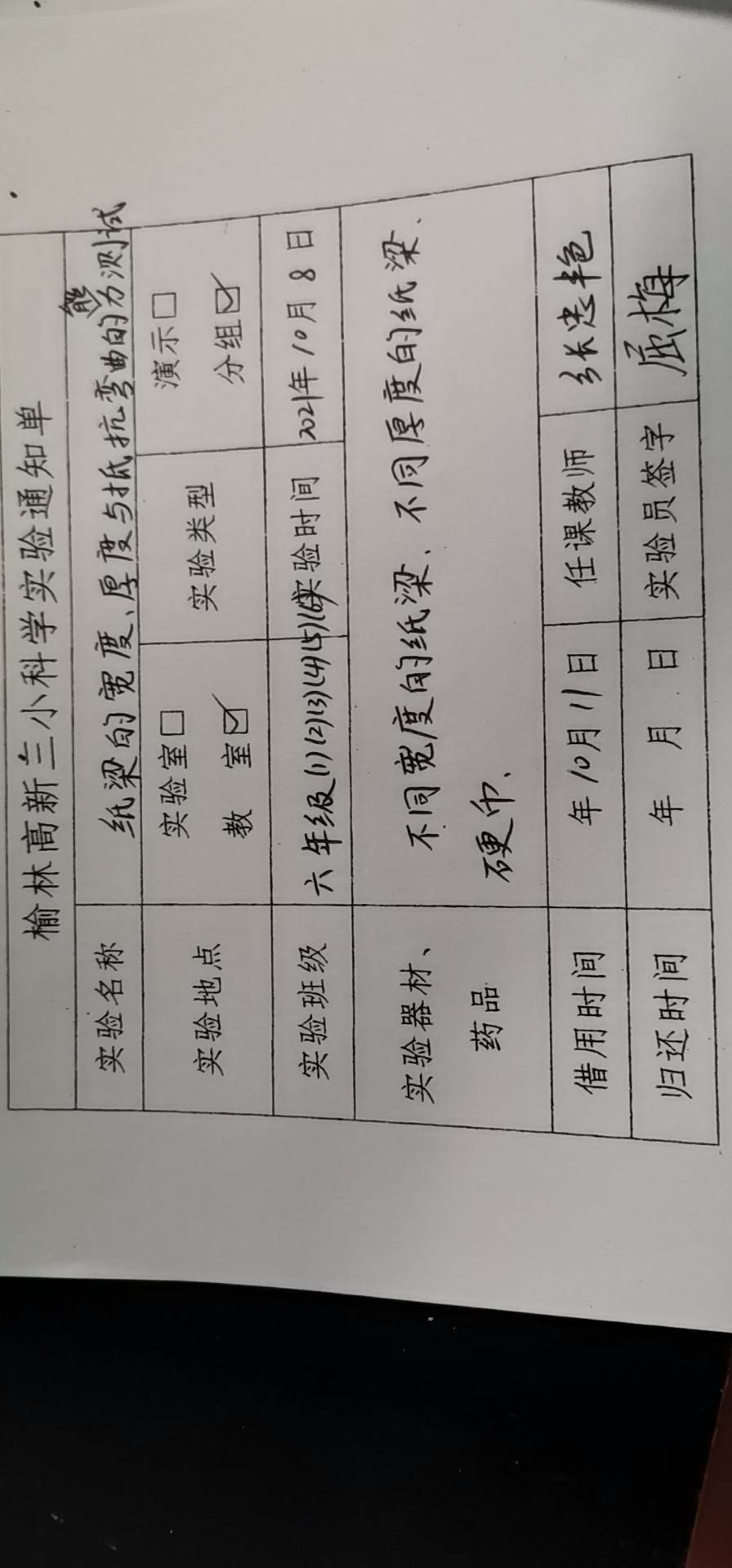 实验登记表