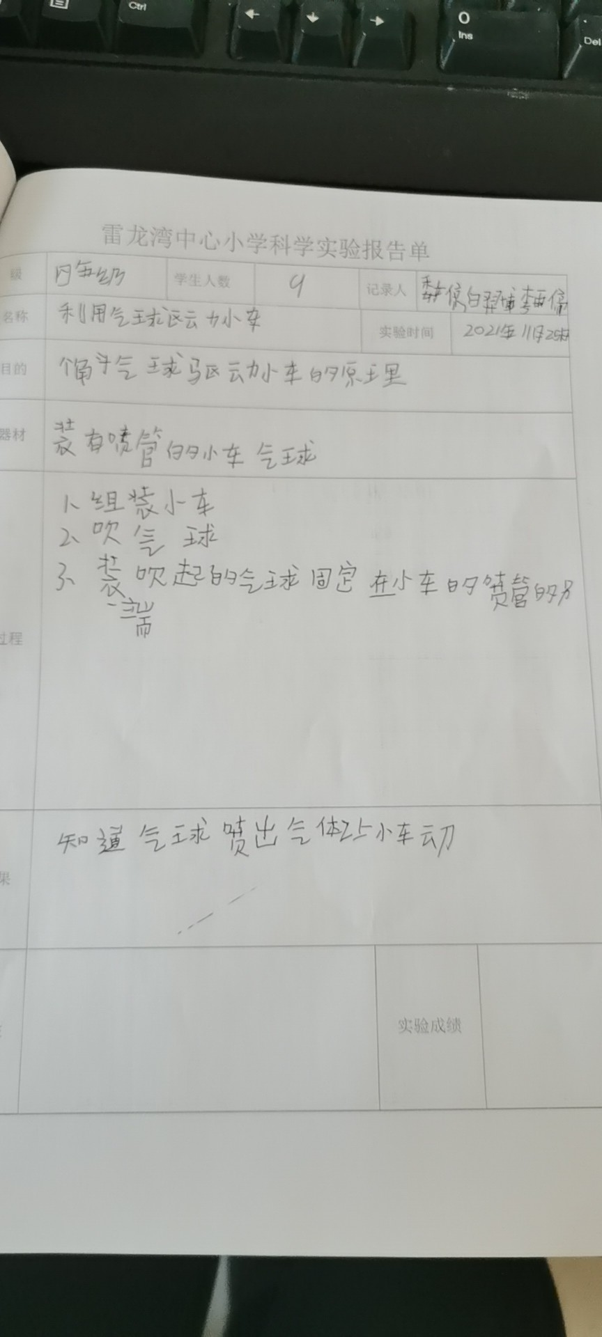 利用气球驱动小车