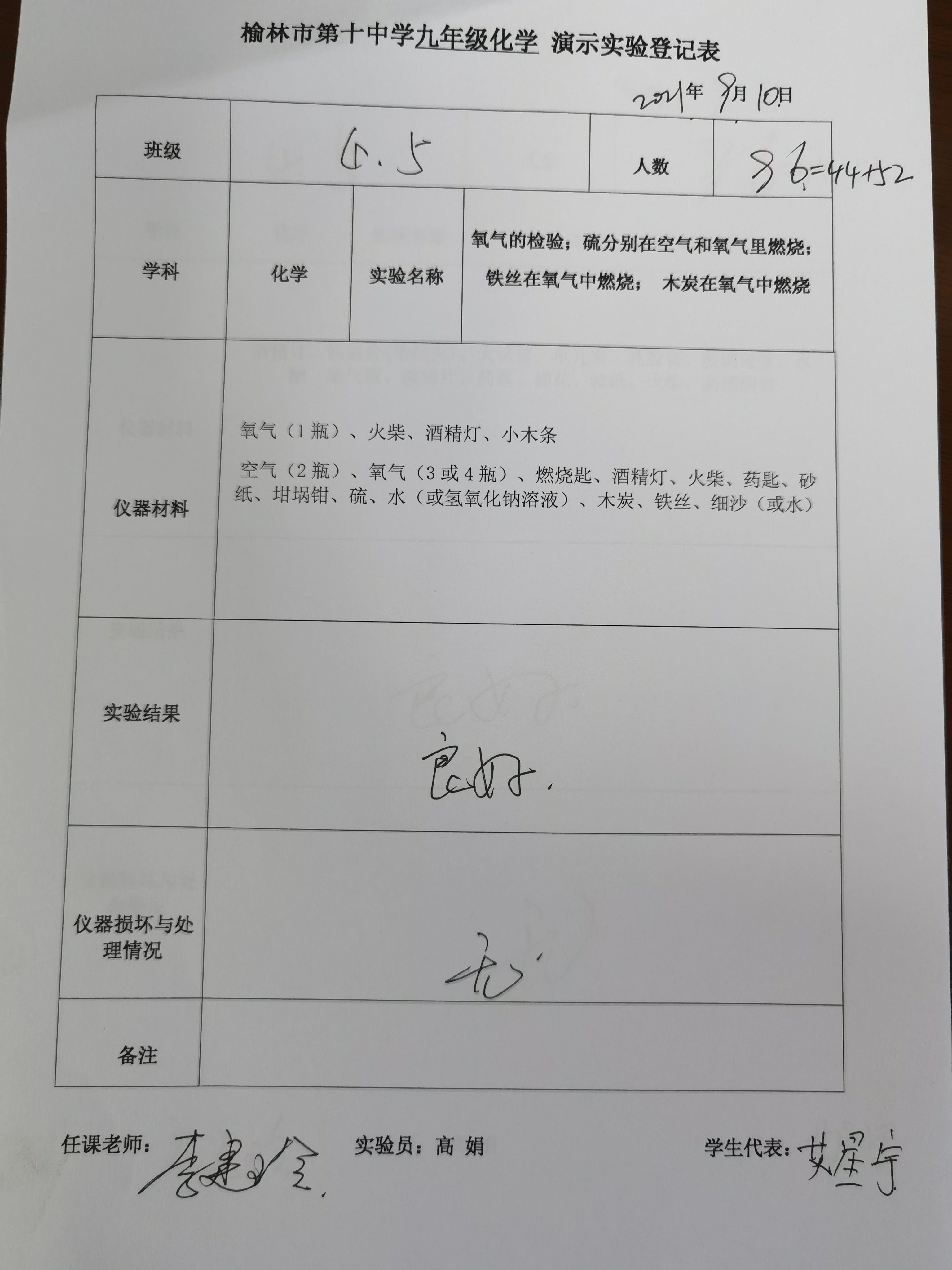 实验登记表