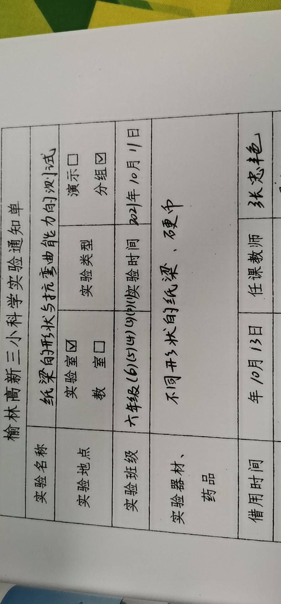 实验登记表