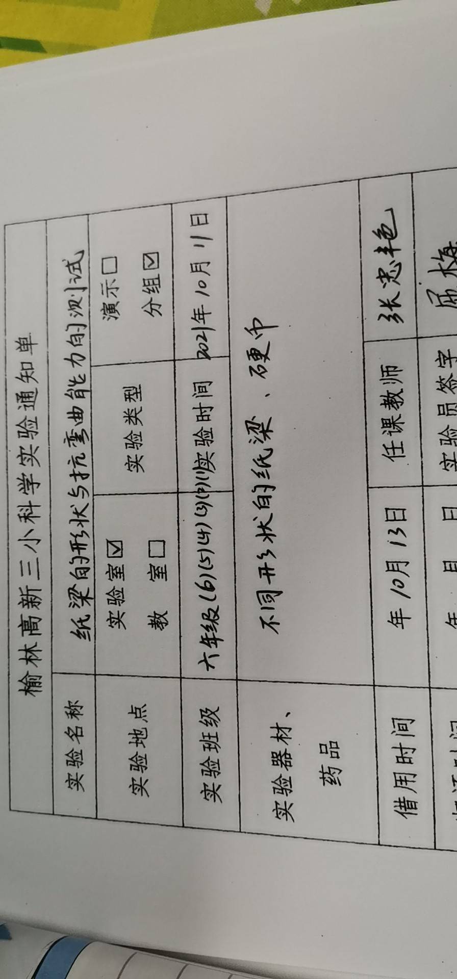 实验登记表