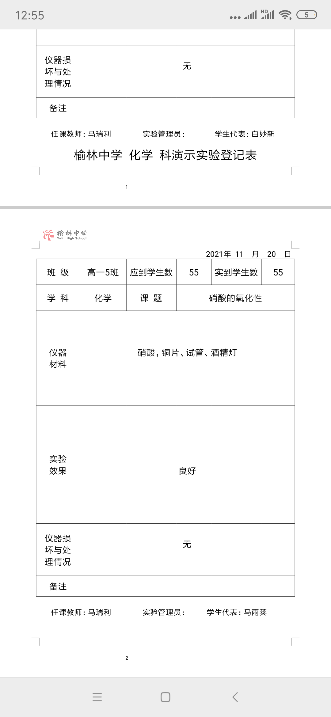 实验登记表