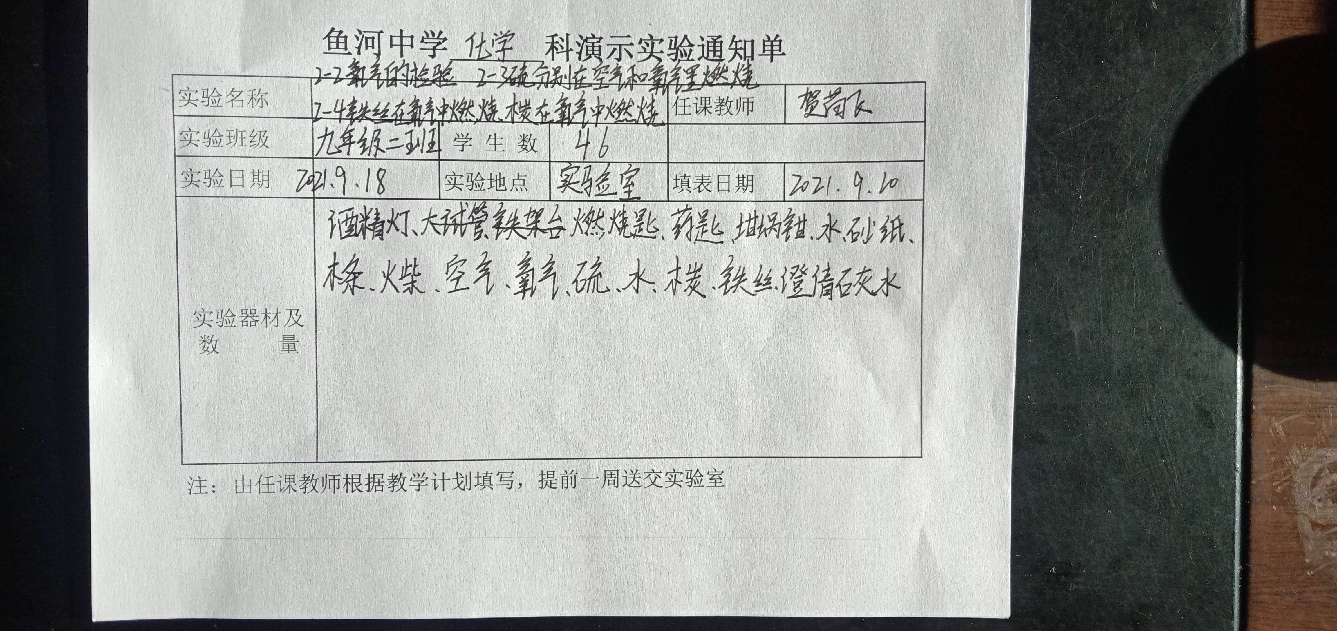 实验登记表