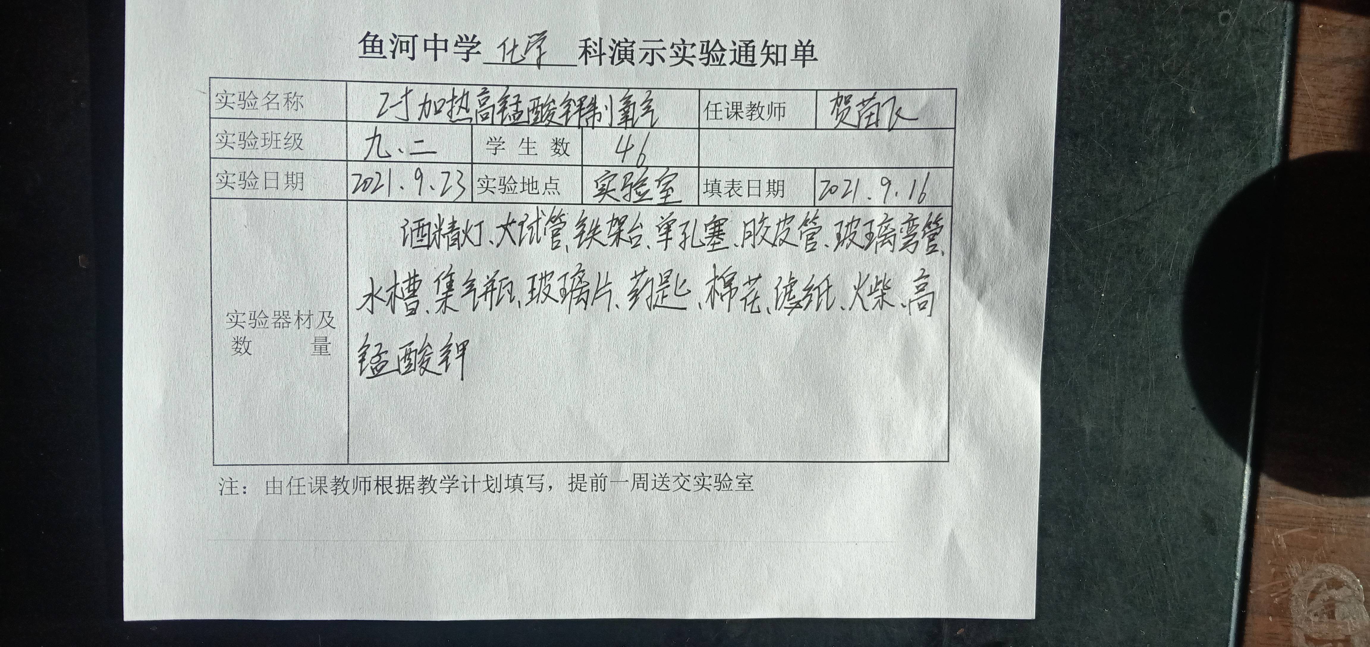 实验登记表