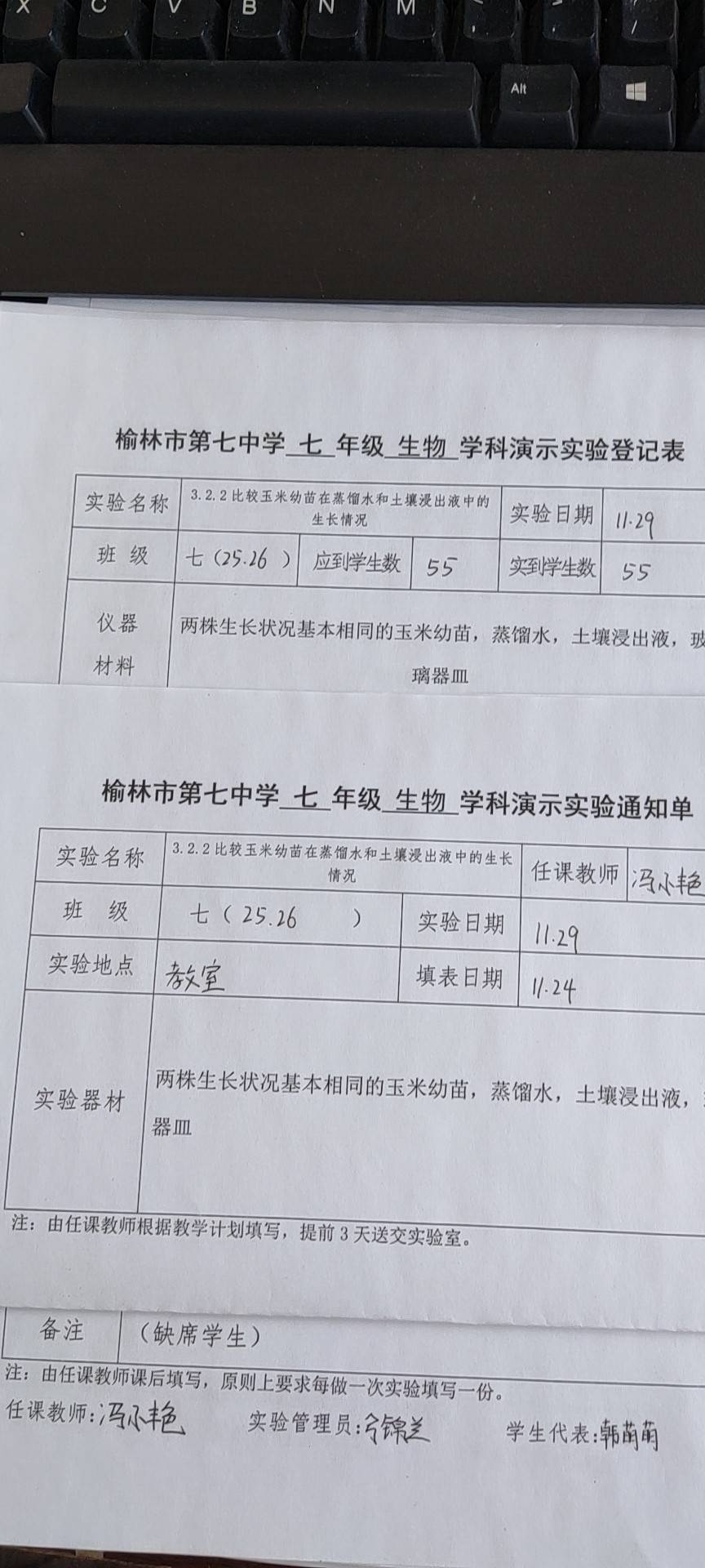 实验登记表