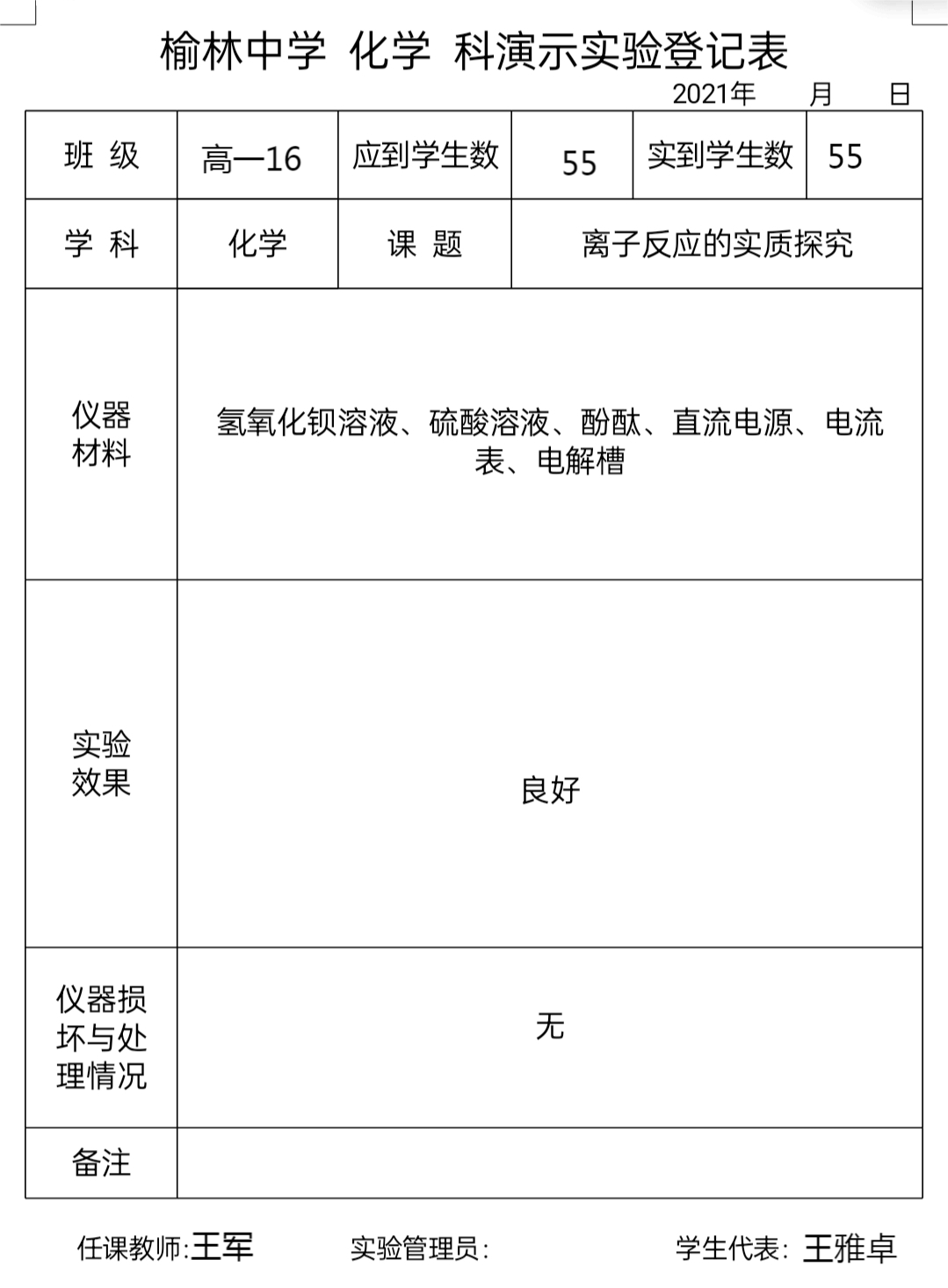实验登记表