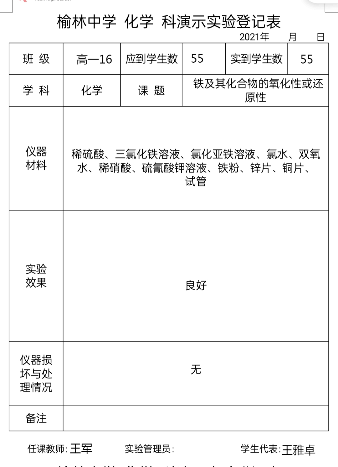 实验登记表