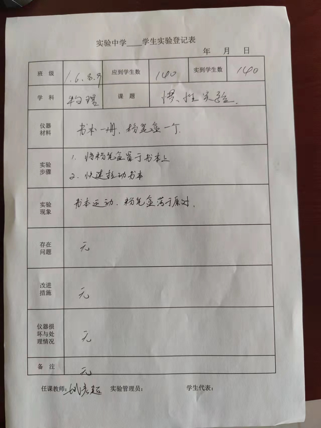 实验登记表